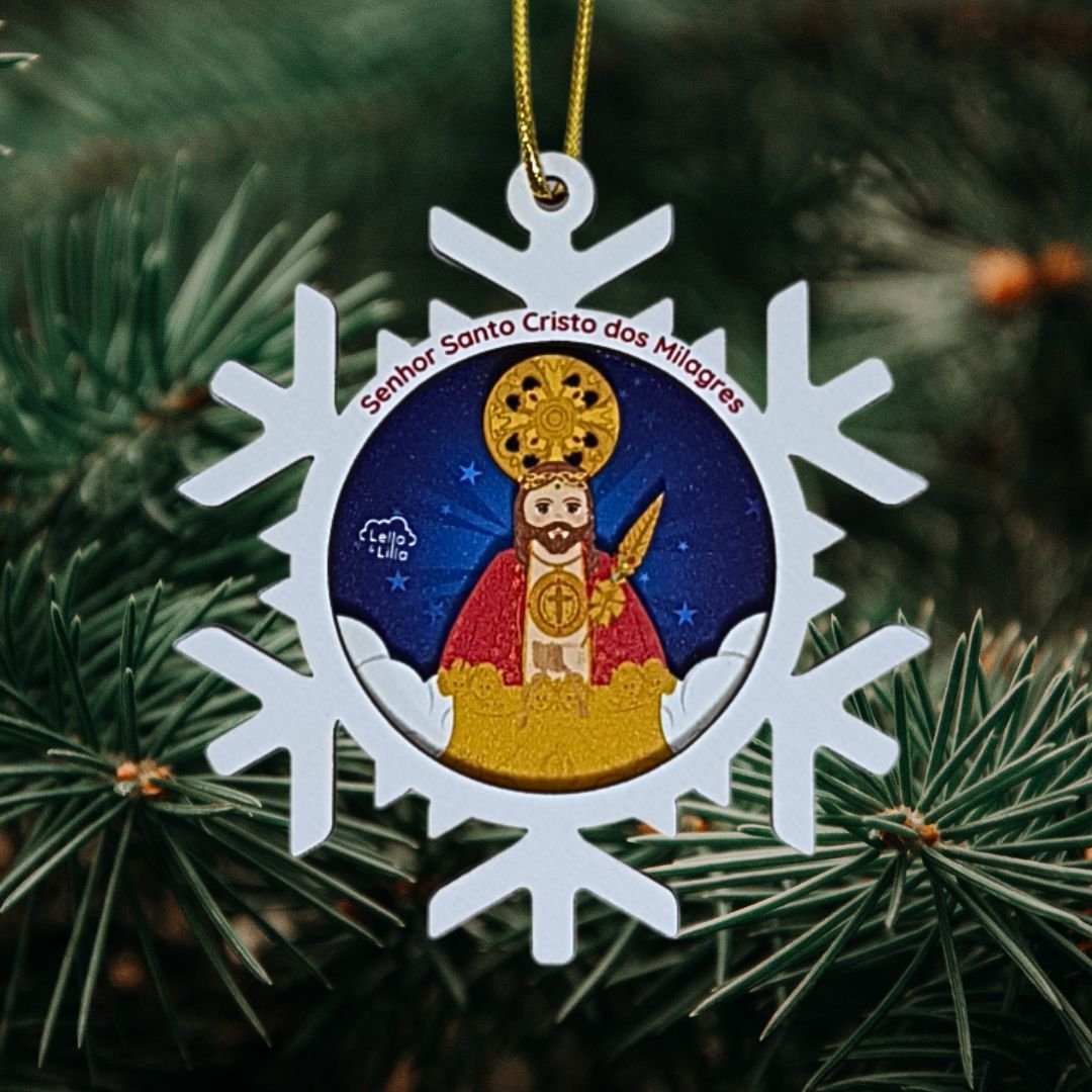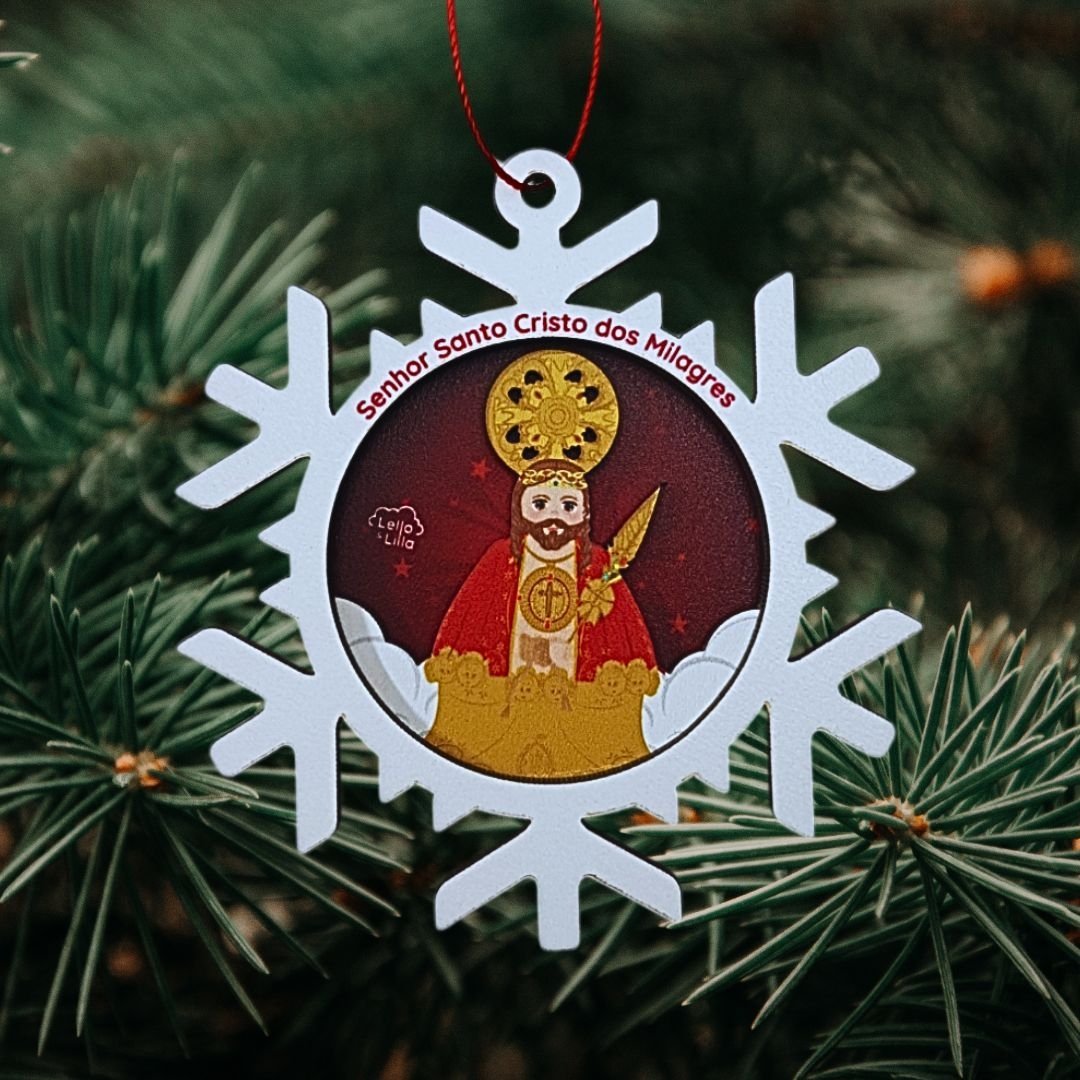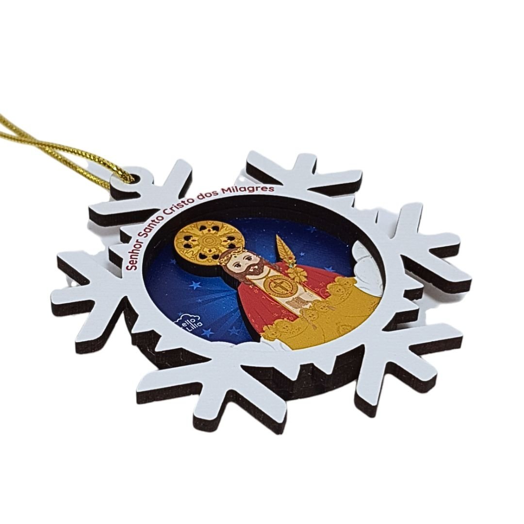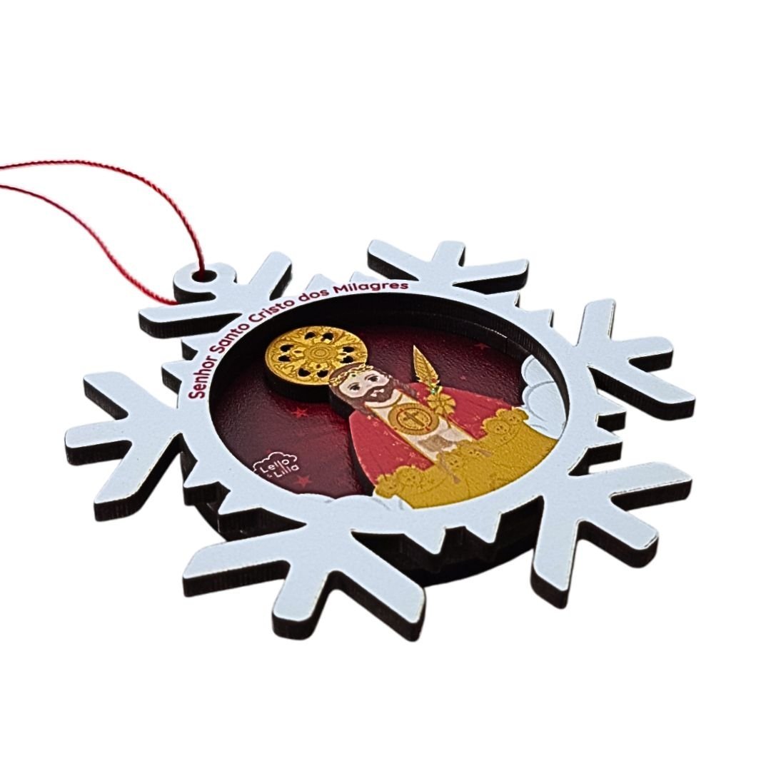 Adorno de Madeira Floco Neve, Coleção Lello&Lila-Santo Cristo dos Milagres