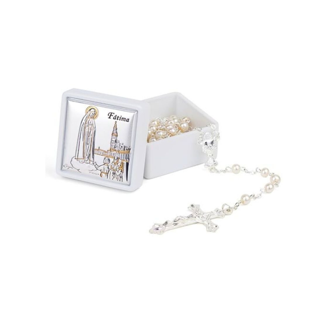 Bilaminado com Caixa 4.50×4.50cm e Terço – Nossa Senhora de Fátima