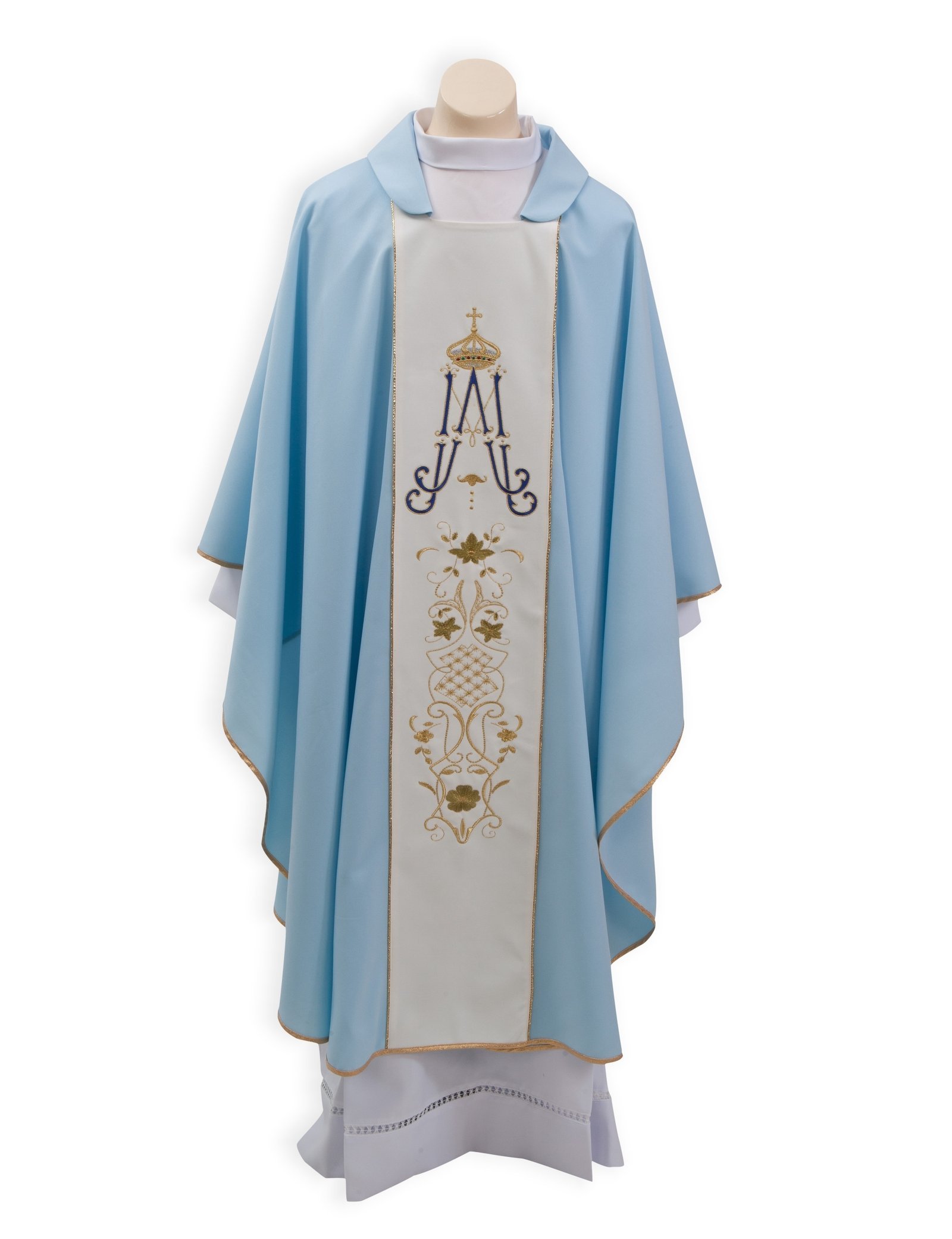 Casula ‘Mariana’ com Estolãoem Mini-Mate 100% PolyesterCor azul c/ estolão branco