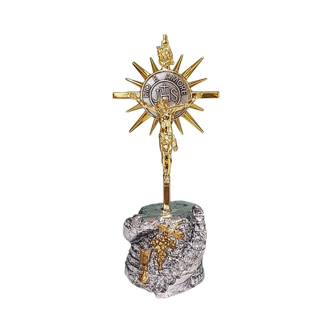 Crucifixo de Metal Dourado c/base, 14cm