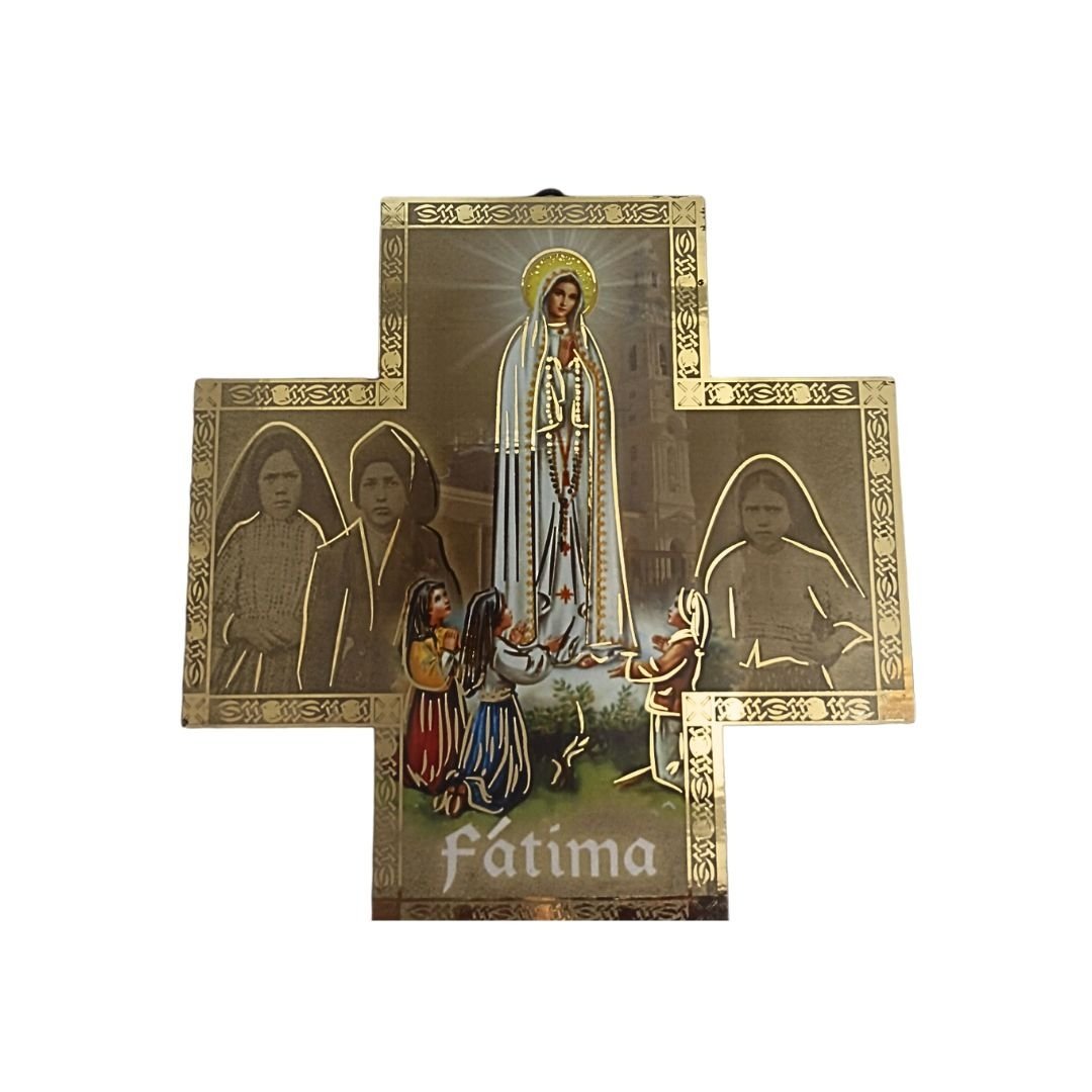 Cruz em Madeira c/Ilustração de Fátima, 15cm
