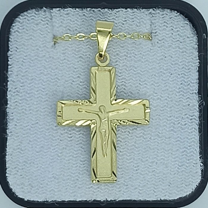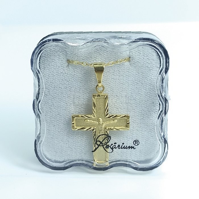 Fio c/Medalha Diamantada 25MM Crucifixo Folheado Dourado