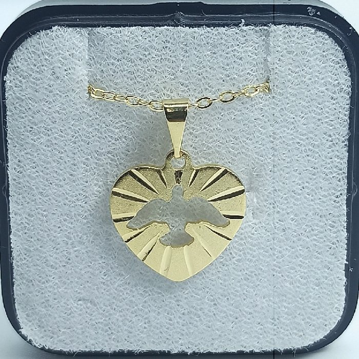 Fio c/Medalha Diamantada Coração 15MM  Espirito Santo Recortado  Folheado Dourado