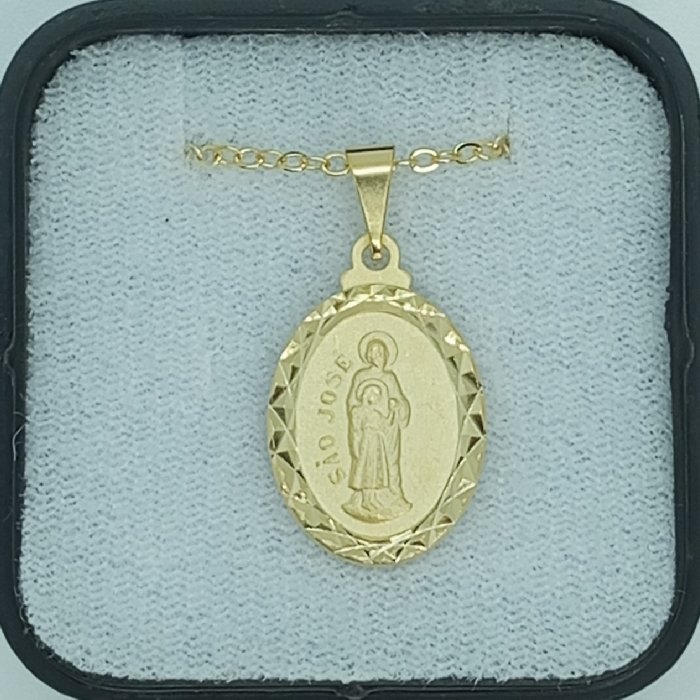 Fio c/ Medalha Diamantada Oval 18MM Latão São José Ouro