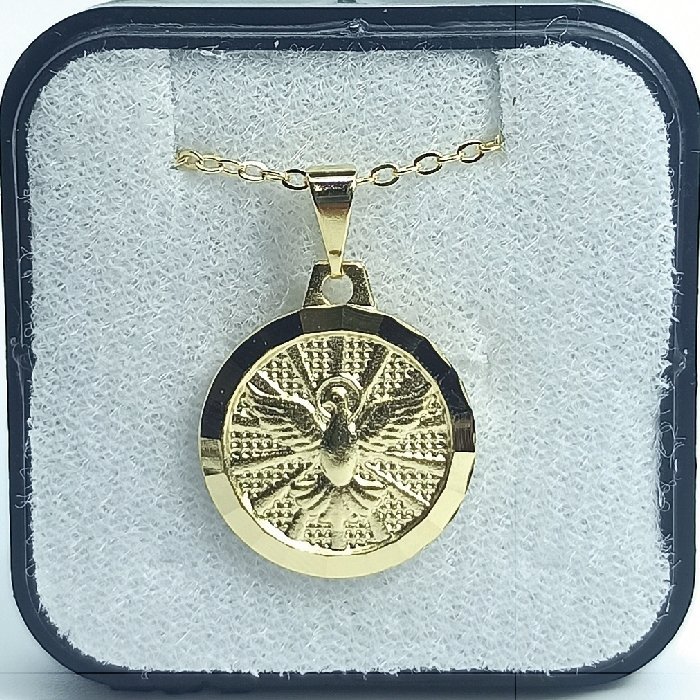 Fio c/Medalha Diamantada Redonda 18MM fundo Raiado c/ Espirito Santo Folheado Dourado