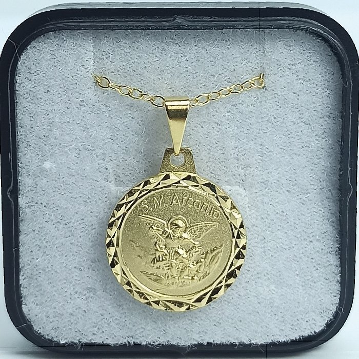 Fio c/ Medalha Redonda 18MM  Lapidado Folheado a Ouro c/São Miguel Arcanjo