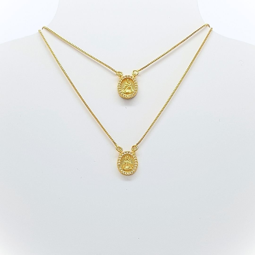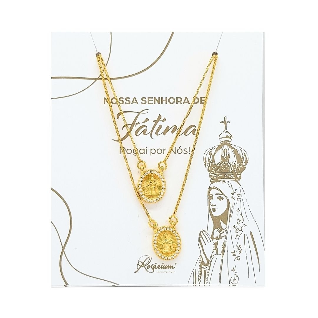 Fio Escapulário Banhado a Ouro 18K c/Nossa Senhora do Carmo e Sagrado Coração de Jesus