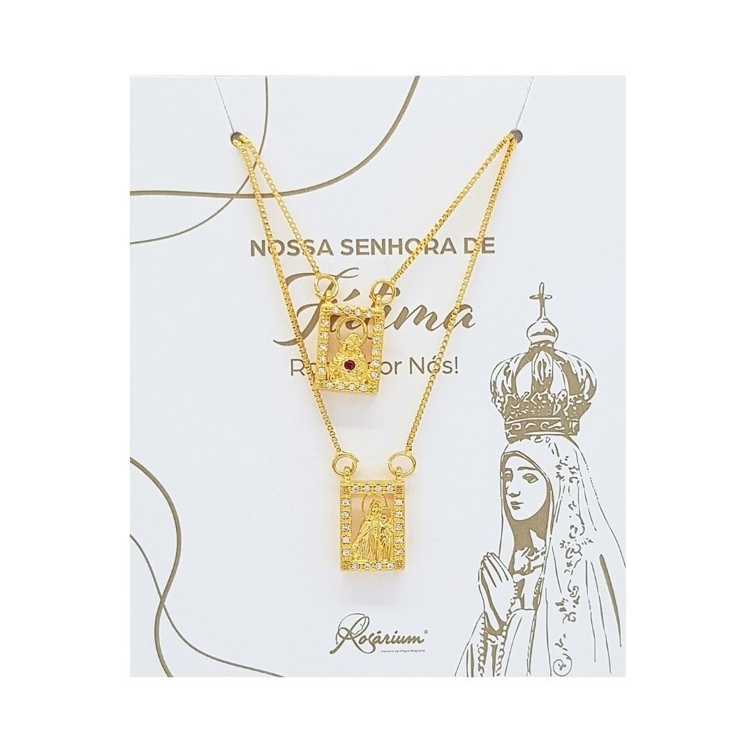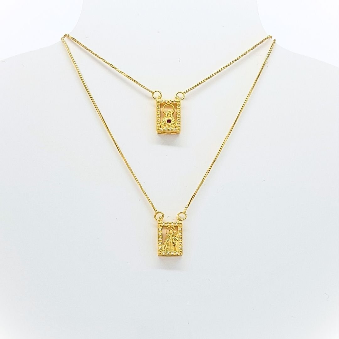 Fio Escapulário Banhado a Ouro 18k – Coração de Jesus e Nossa Senhora do Carmo