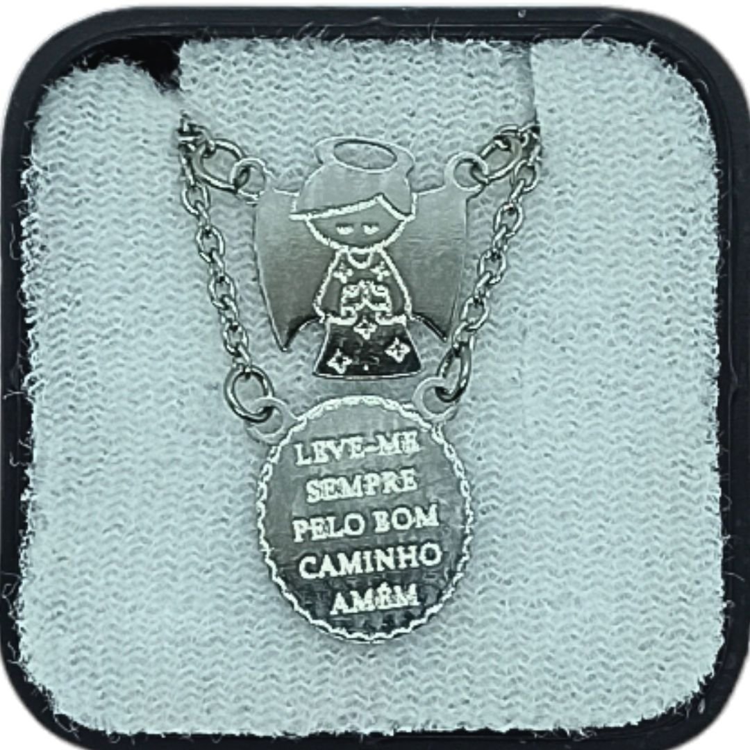 Fio Escapulário em Inox Infantil c/Anjo Prateado