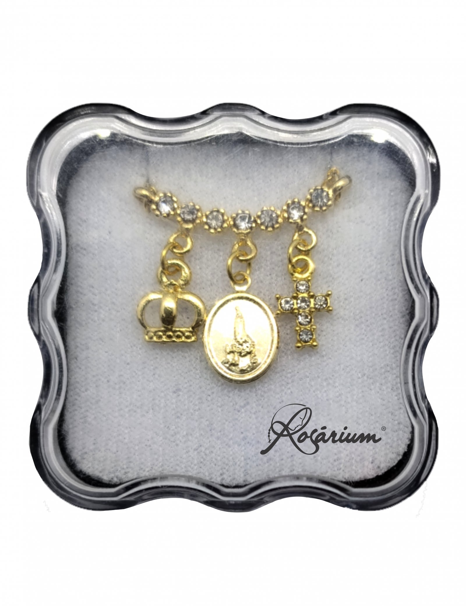 Fio Gargantilha Nª Srª de Fátima Folheada a Ouro c/ Coroa e Cruz