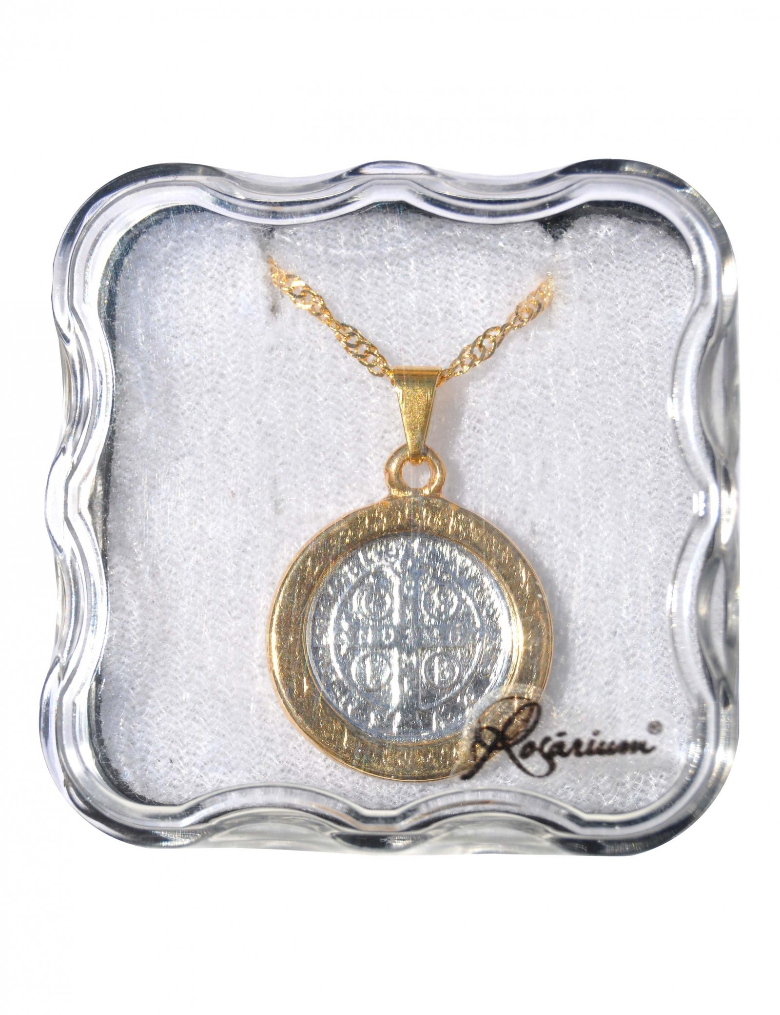 Fio – Medalha de São Bento – 2,2 cmDourada com centro prateado