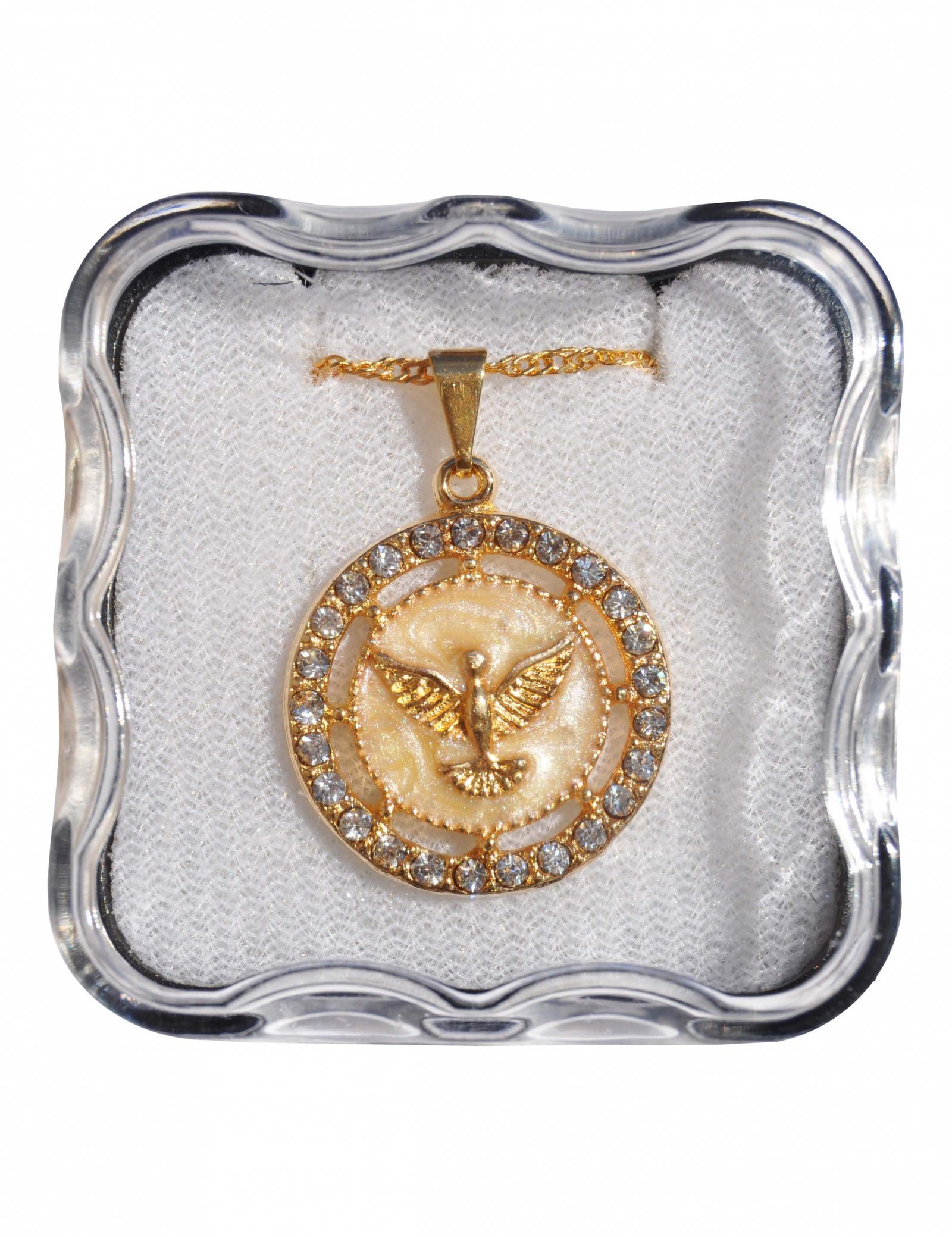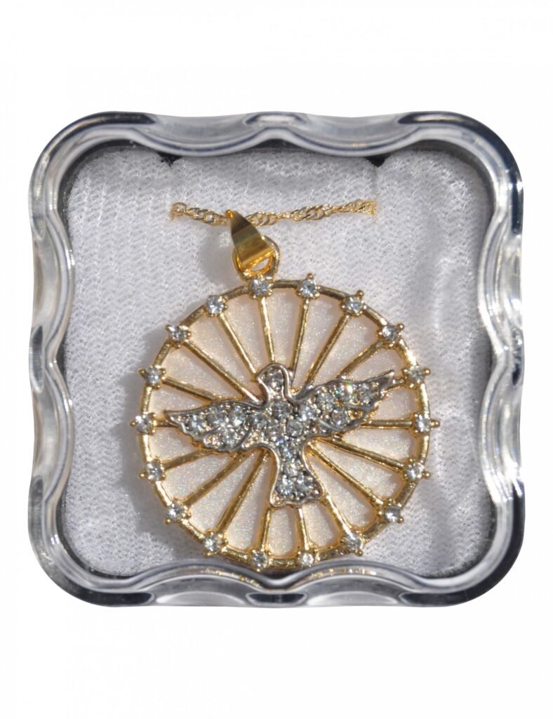 Fio – Medalha Espírito Santo c/ strass c/ esmalteFolheada ouro