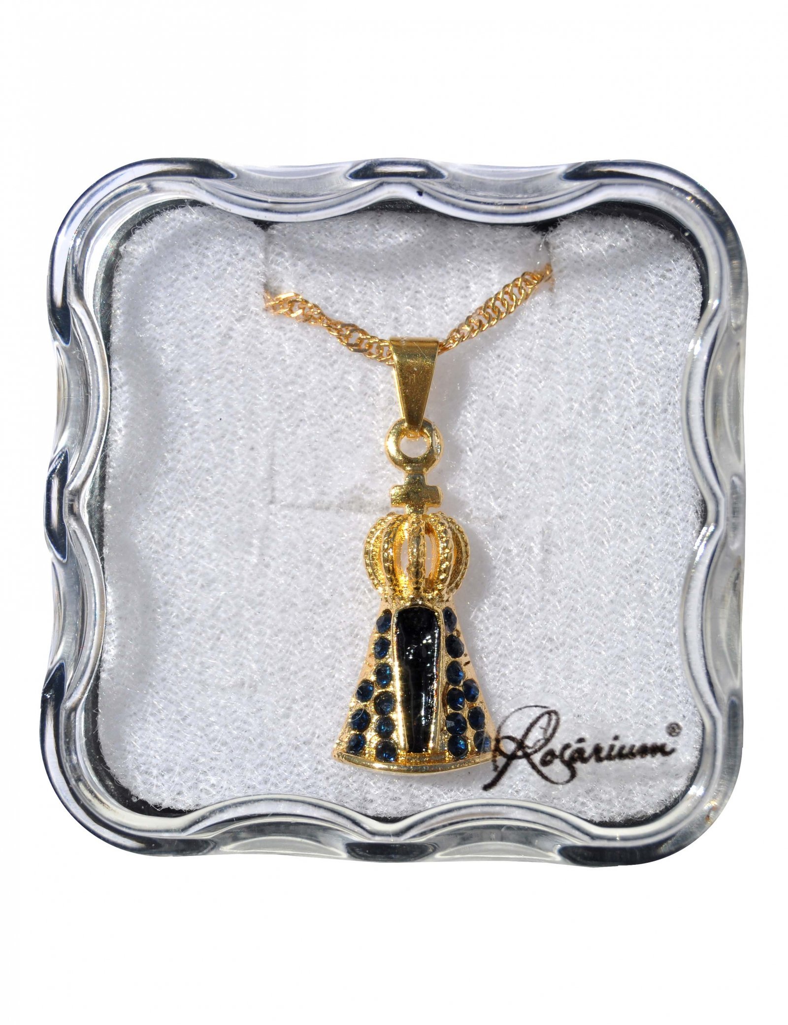 Fio – Medalha Nª Srª Aparecida com strass azulFolheado a ouro