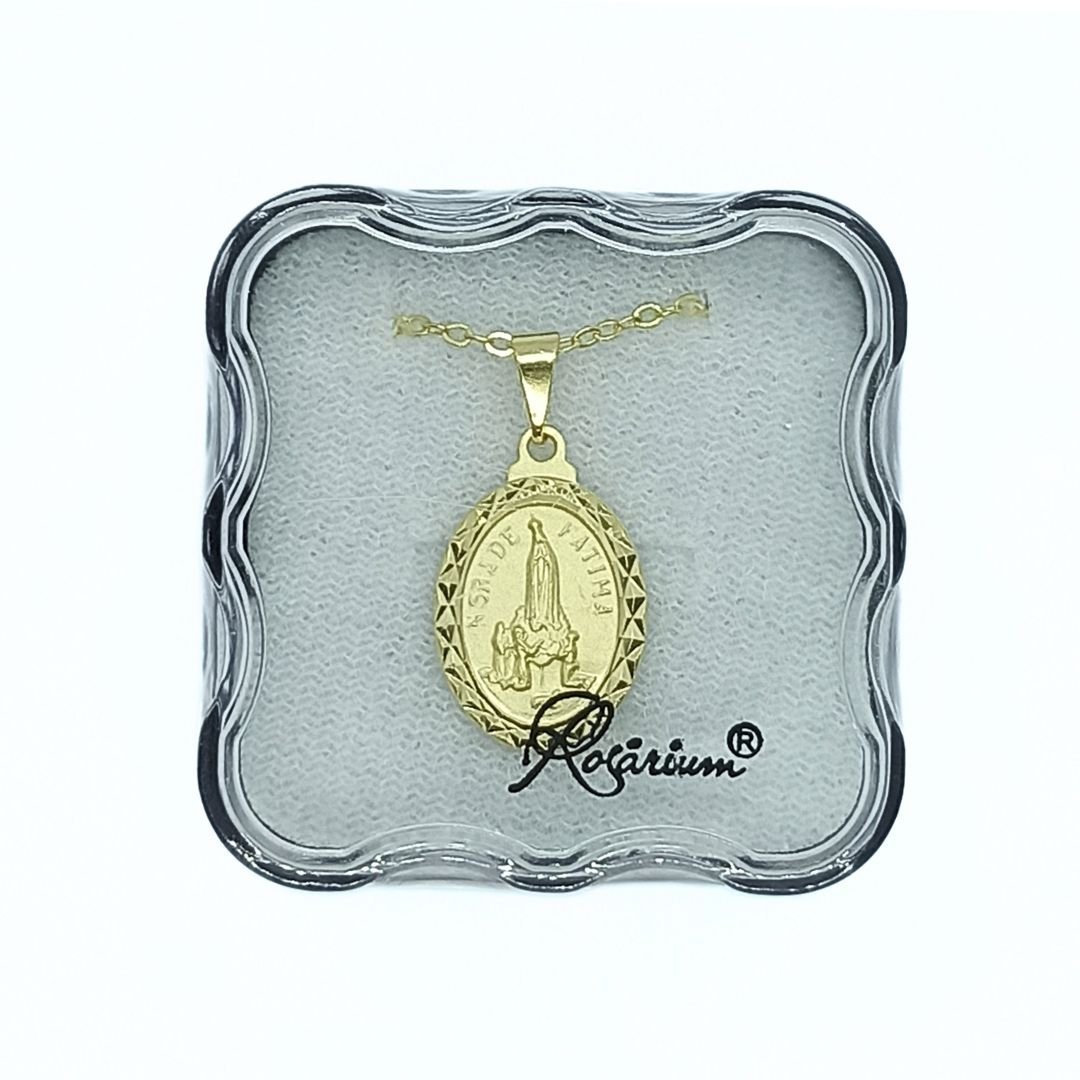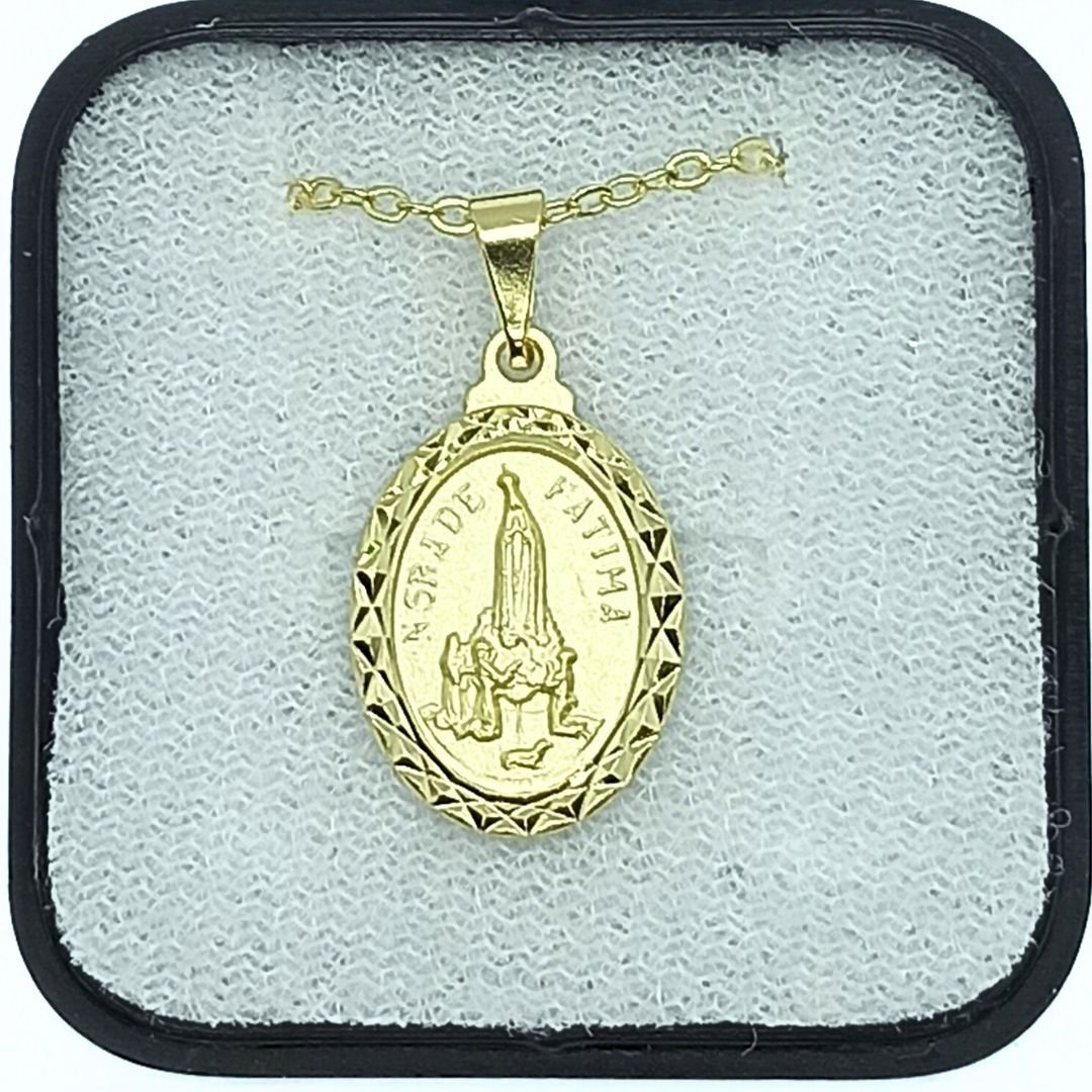 Fio Medalha Oval Diamantada Folheada a Ouro Apariçao