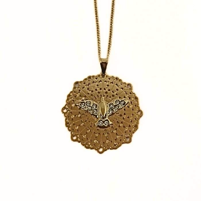Fio – Pomba e crucifixo com strassFolheado a ouro