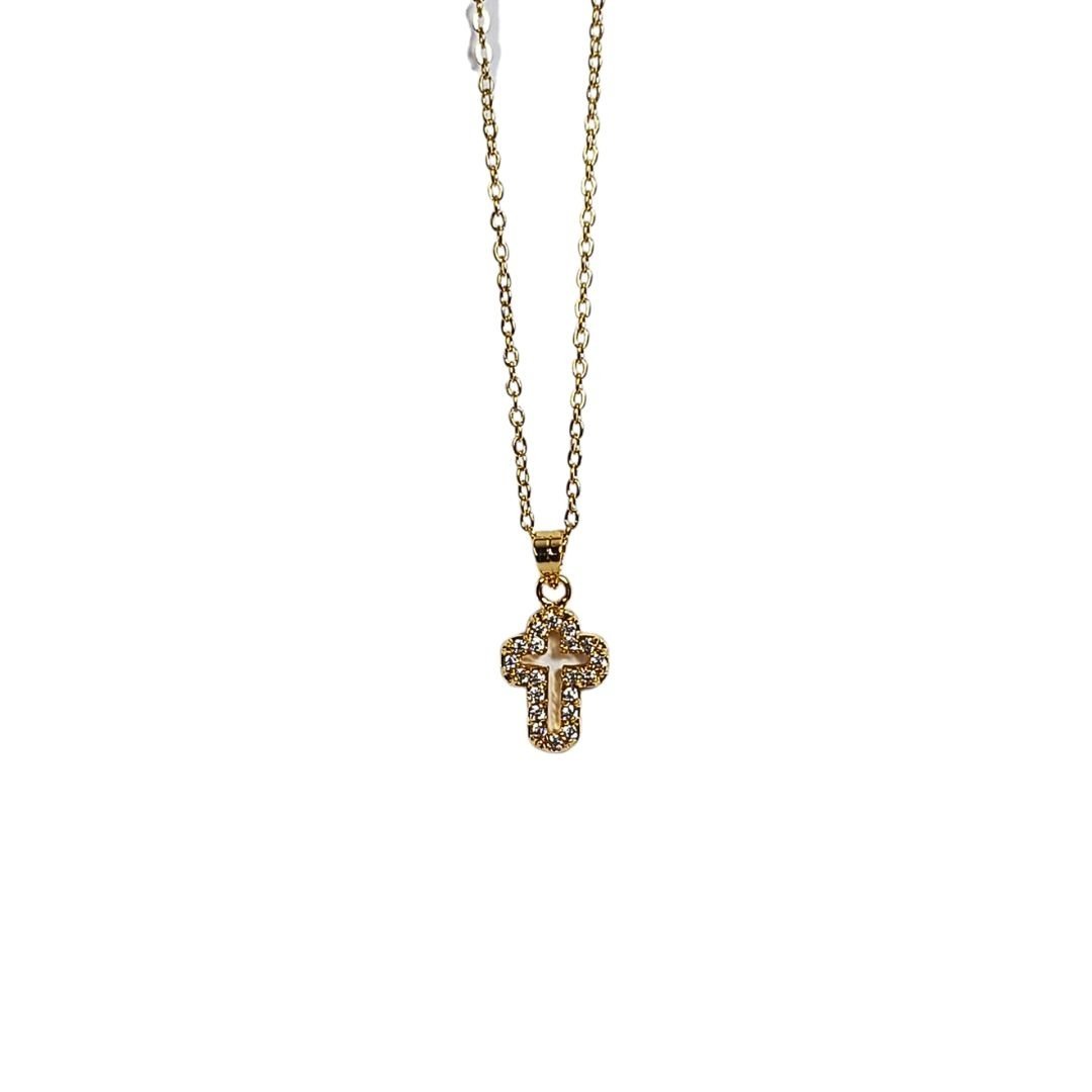 Fio Semi Jóia Ouro c/ Cruz Recortada Zircônia cúbica, 1.5cm
