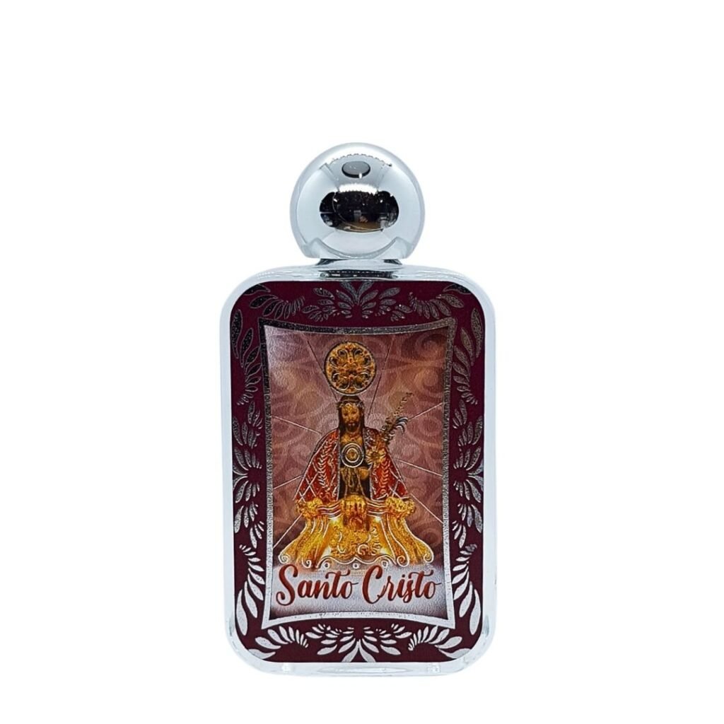 Frasco de Água Retangular c/Prateado 10cm – Santo Cristo