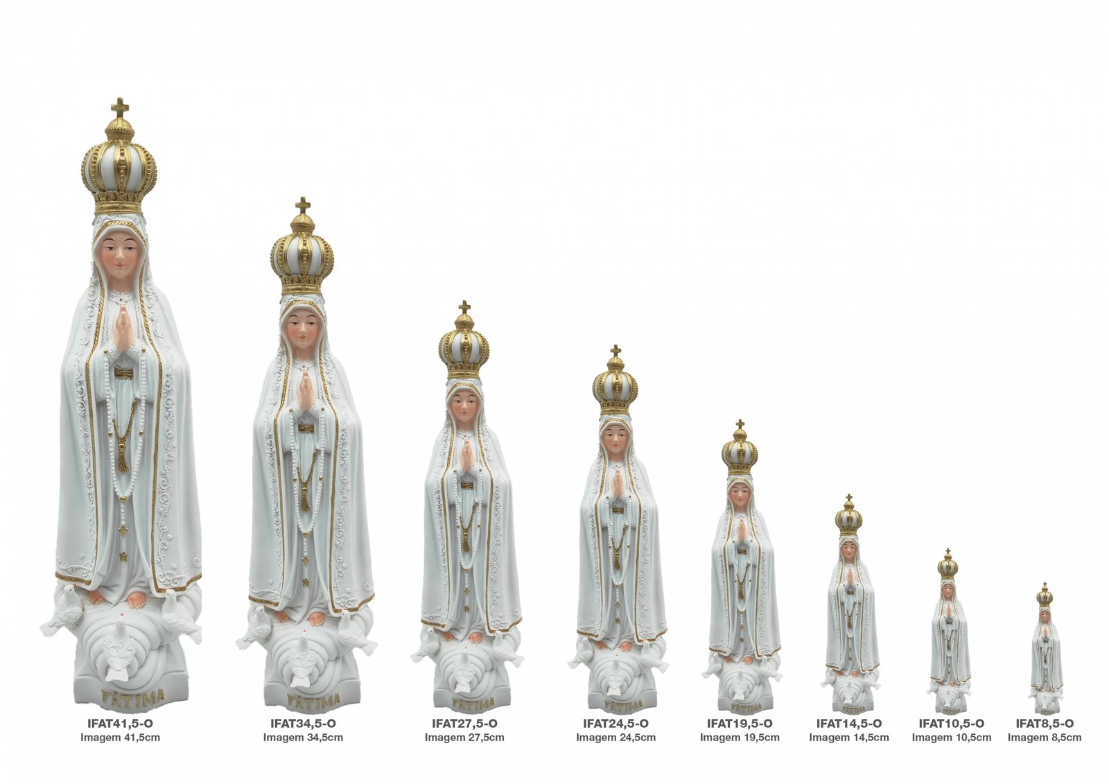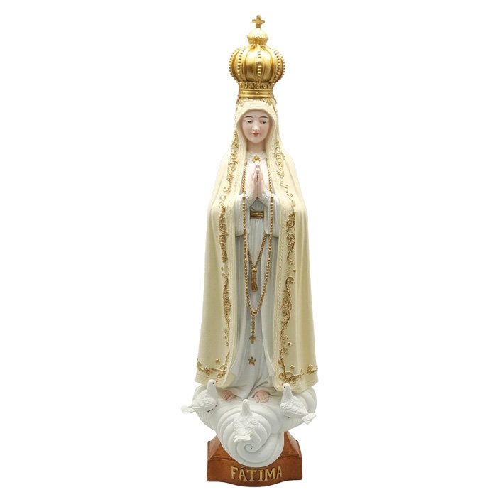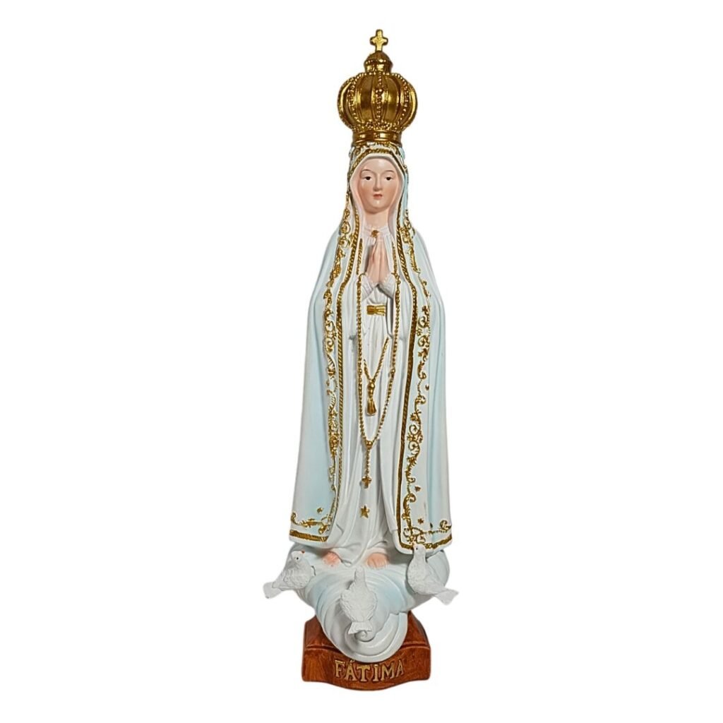 Imagem em Resina NS Fátima Branca/Pele c/Frizo Ouro c/Pombas