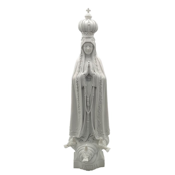 Imagem em Resina NS Fátima Branca/Pele c/ Frizo Prateado c/Pombas
