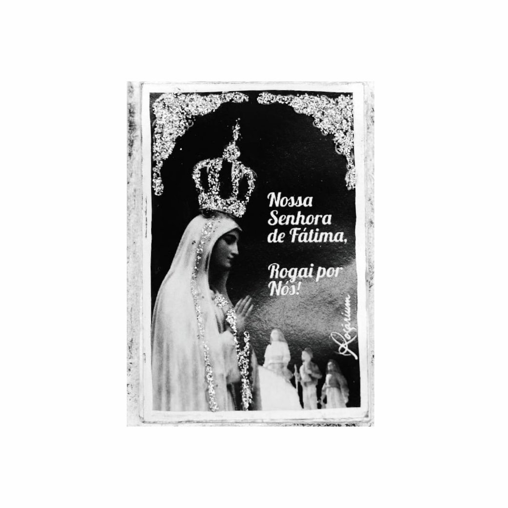 Iman em madeira folhas – Fátima e 3 Pastorinhos Prata