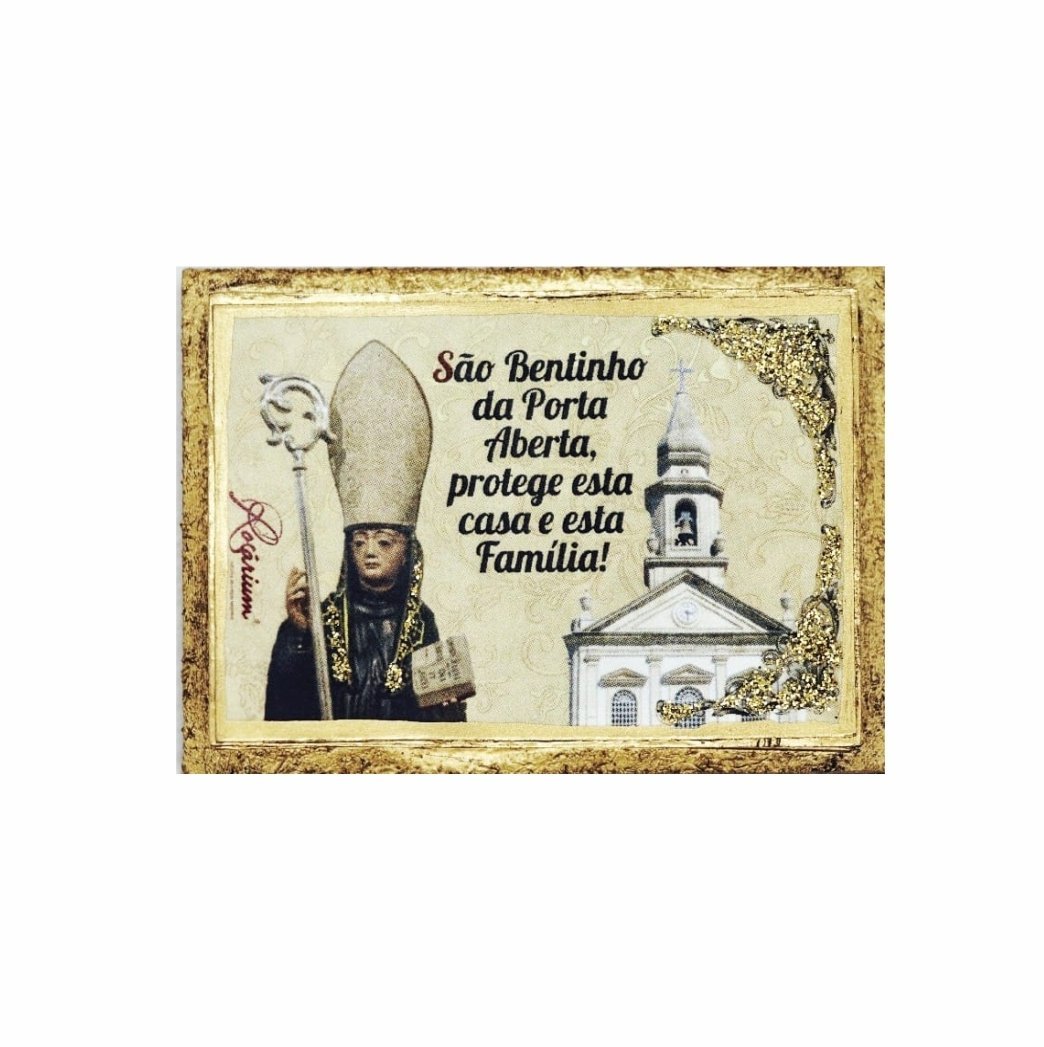 Iman em madeira folhas – São Bentinho Ouro