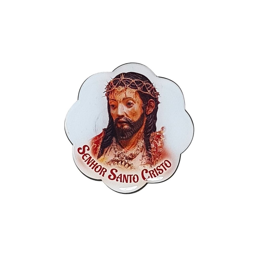Iman em Madeira formato de flor c/Santo Cristo, 5cm
