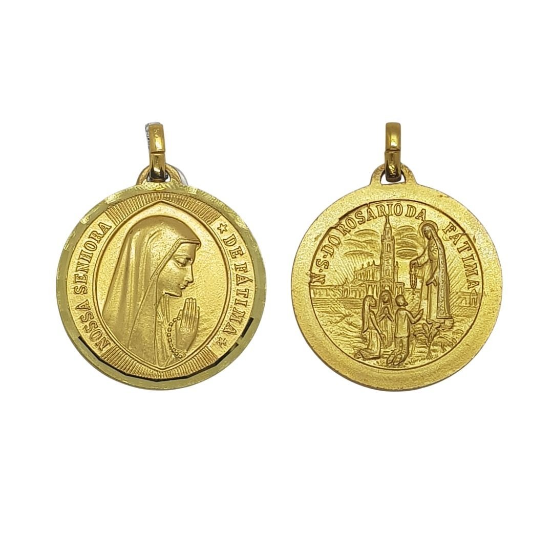 Medalha de Metal Dourada Lapidada c/ Nossa Senhora de Fátima, 3.1cm