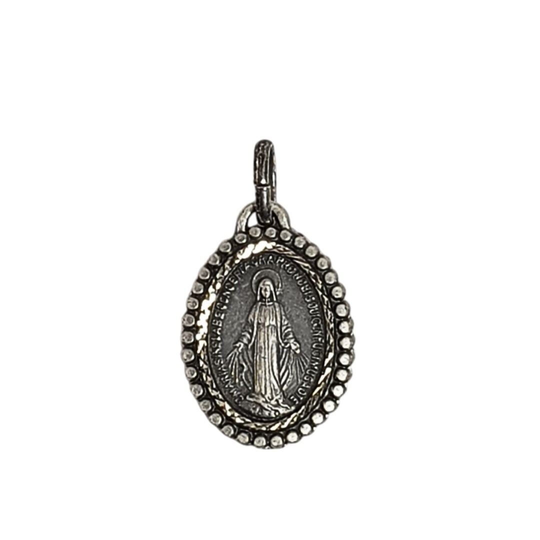 Medalha de Metal Oval Lapidada Prateada, Nossa Senhora Graças, 18x14mm