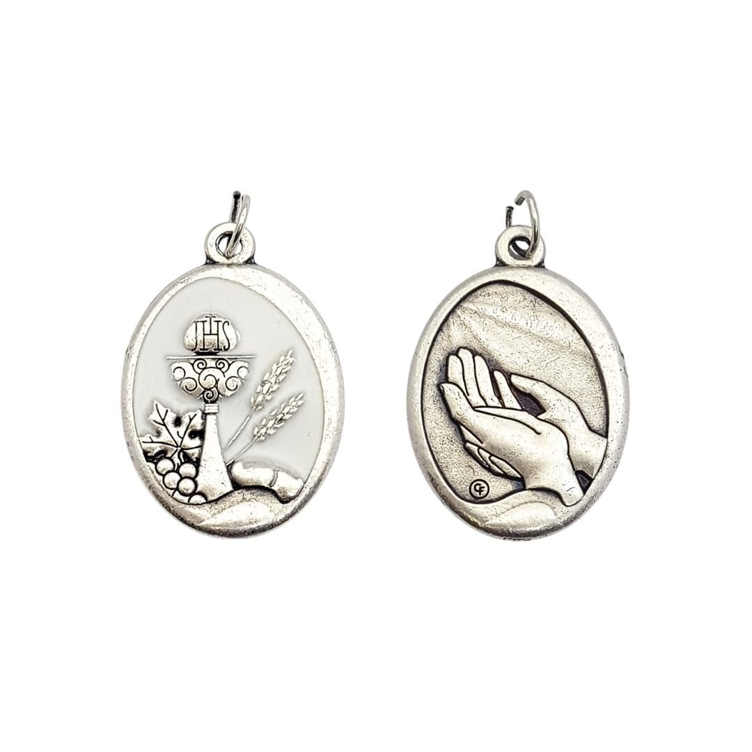 Medalha de Metal Oval Prateada, Primeira Comunhão, 2.7cm