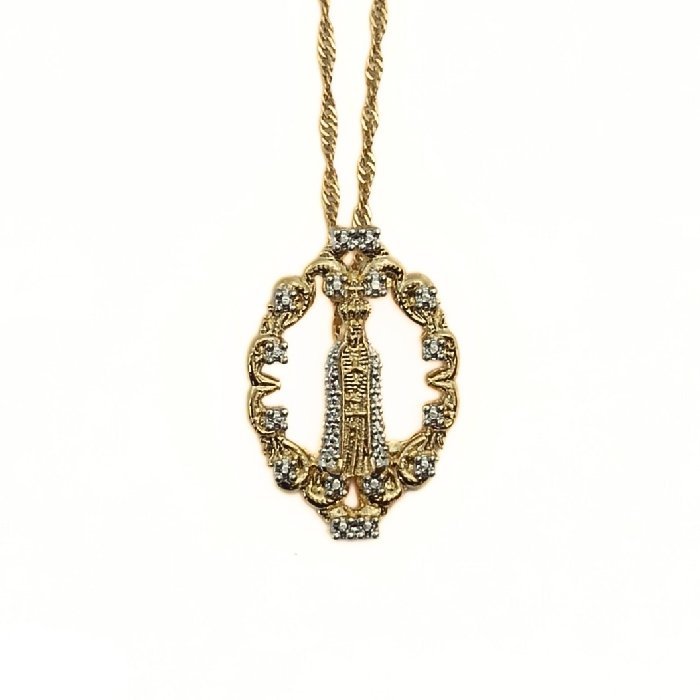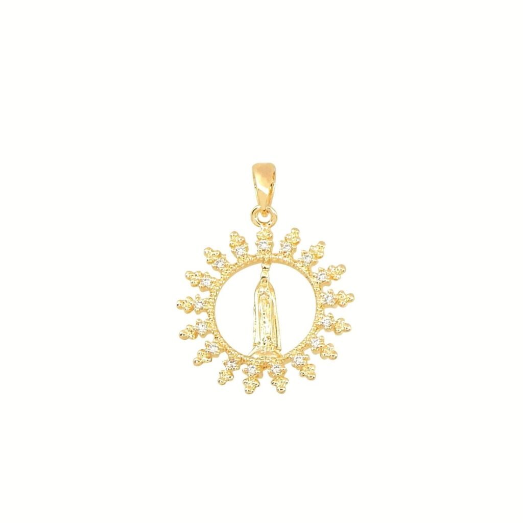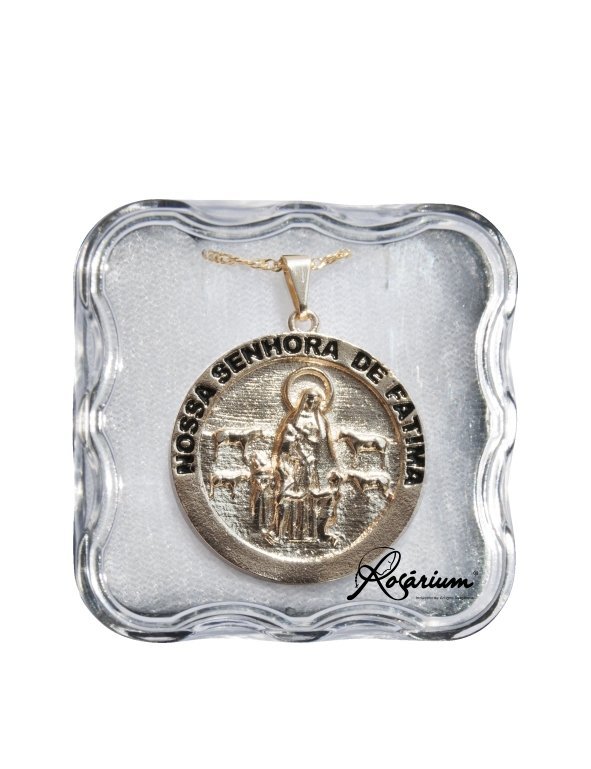 Medalha folheada a ouro – redonda c/ strassAparição de FátimaProduto comemorativo do Centenário das Aparições de Fátima