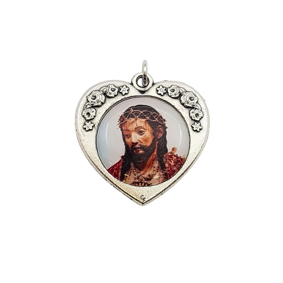 Medalha Formato Coração, Prateada, Santo Cristo, 3cm