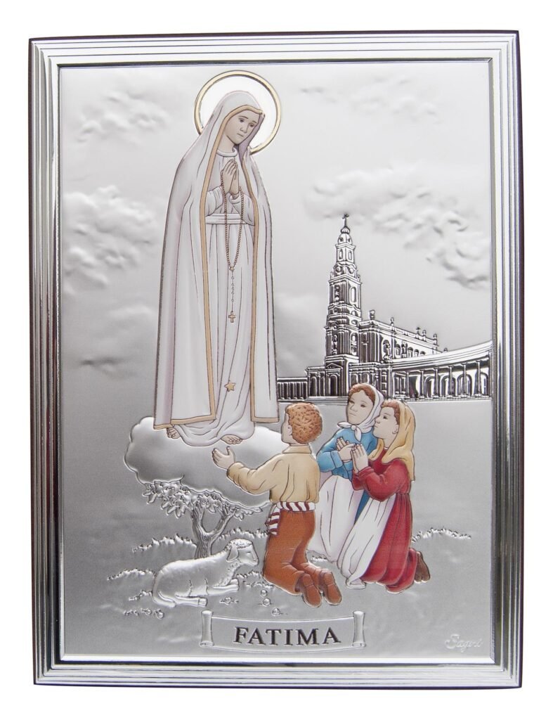 Placa bilaminadaNª Senhora de Fátima(5,5 cm x 3,5 cm)