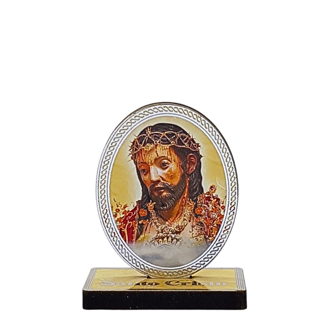 Placa em Madeira com Senhor Santo Cristo dos Milagres, 7cm