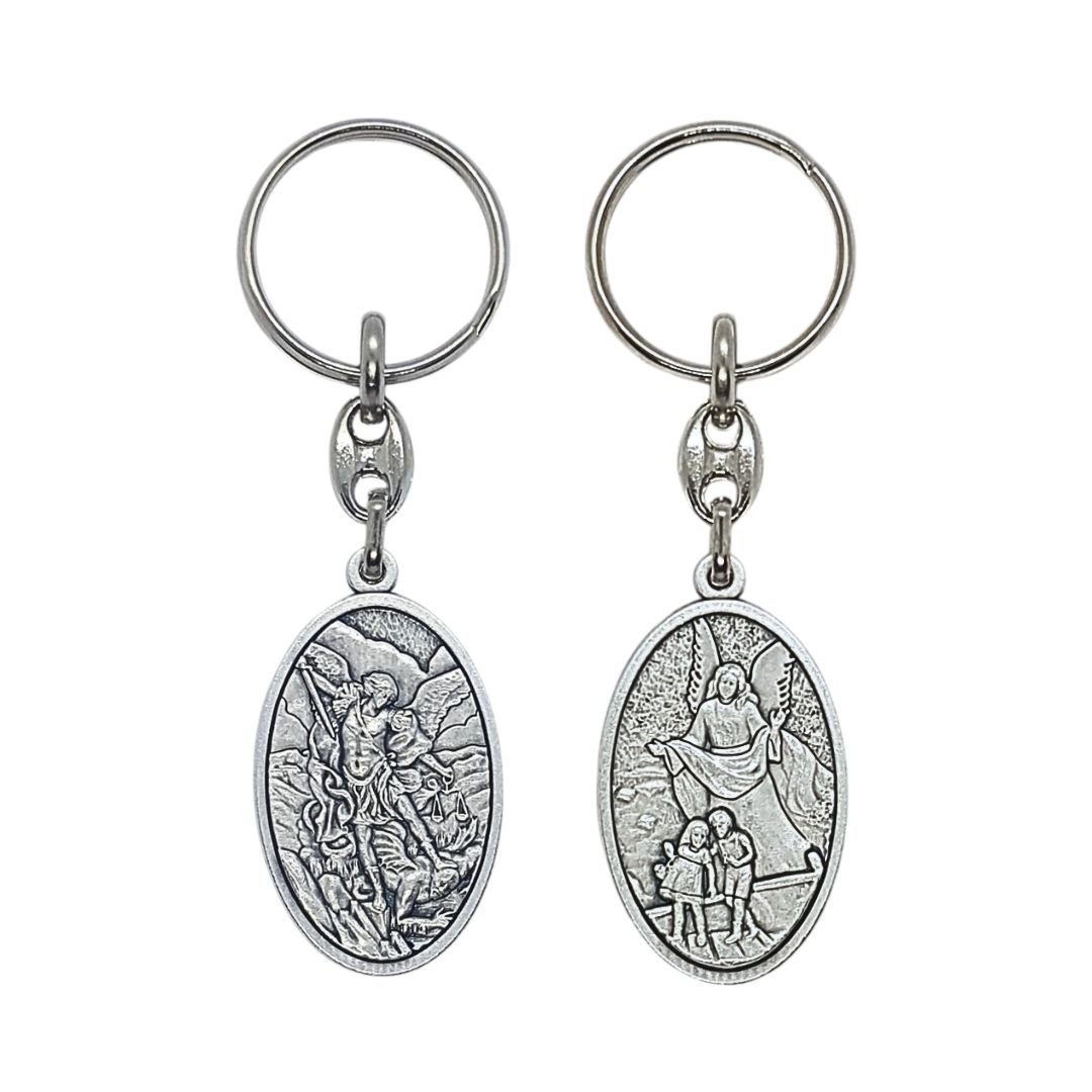 Porta-Chaves Oval de Metal-São Miguel/Anjo da Guarda