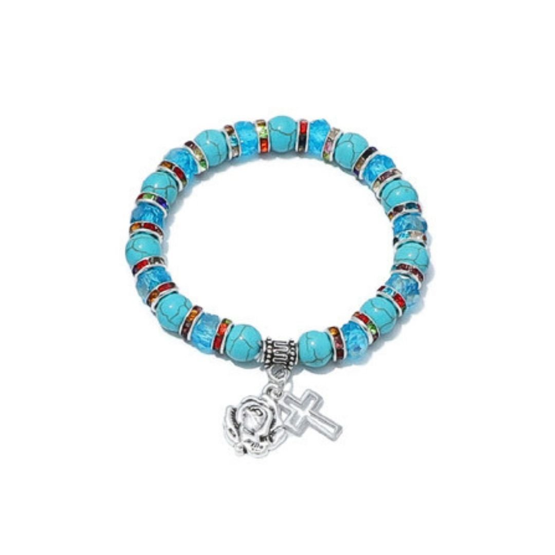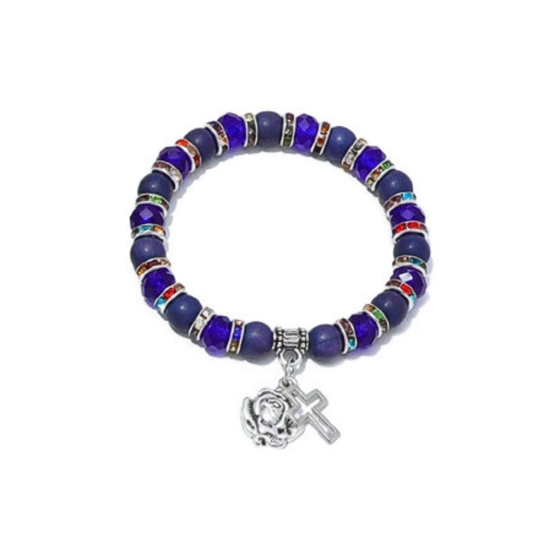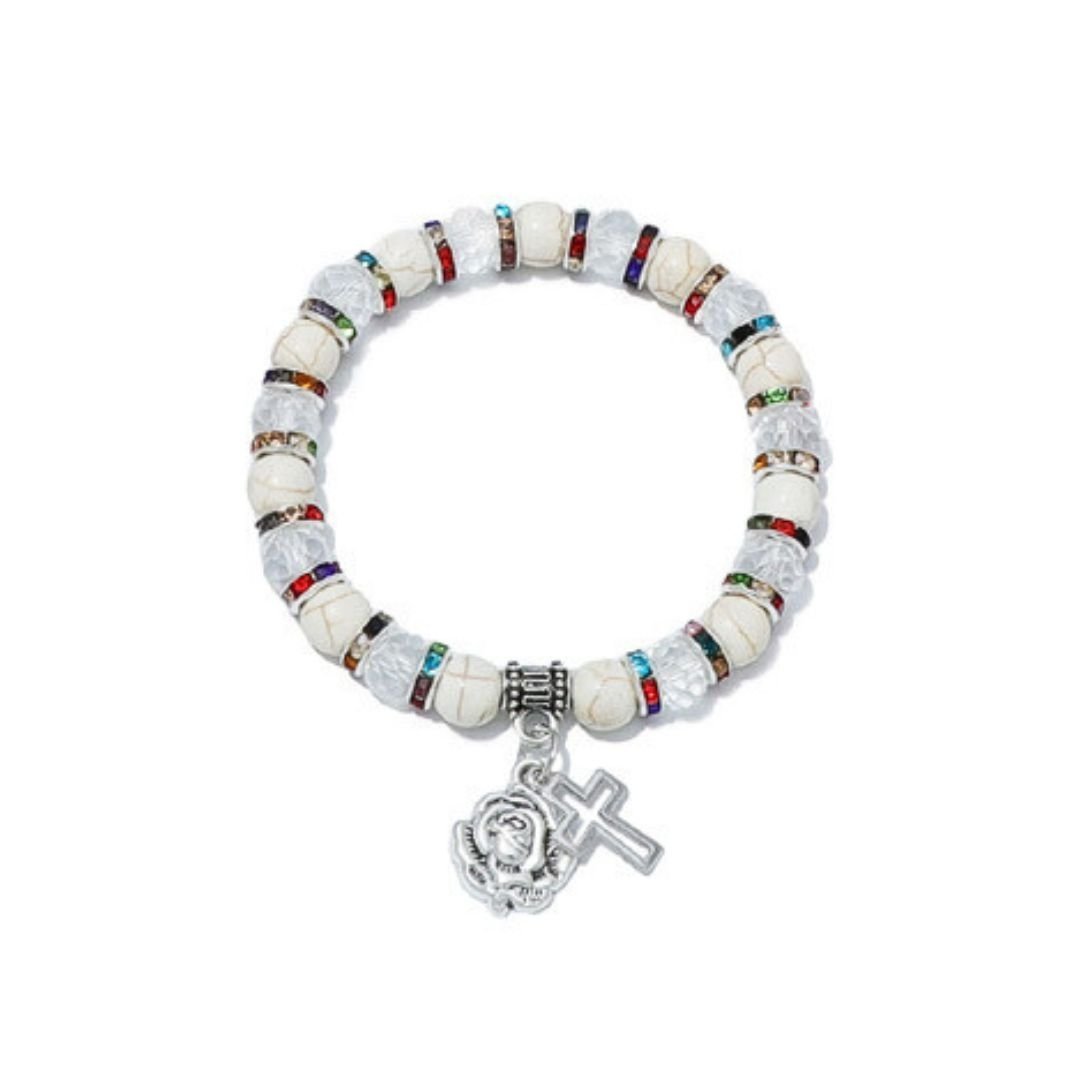 Pulseira de Pedra Raiada e Cristal c/Anéis Strass – Cores Sortidas