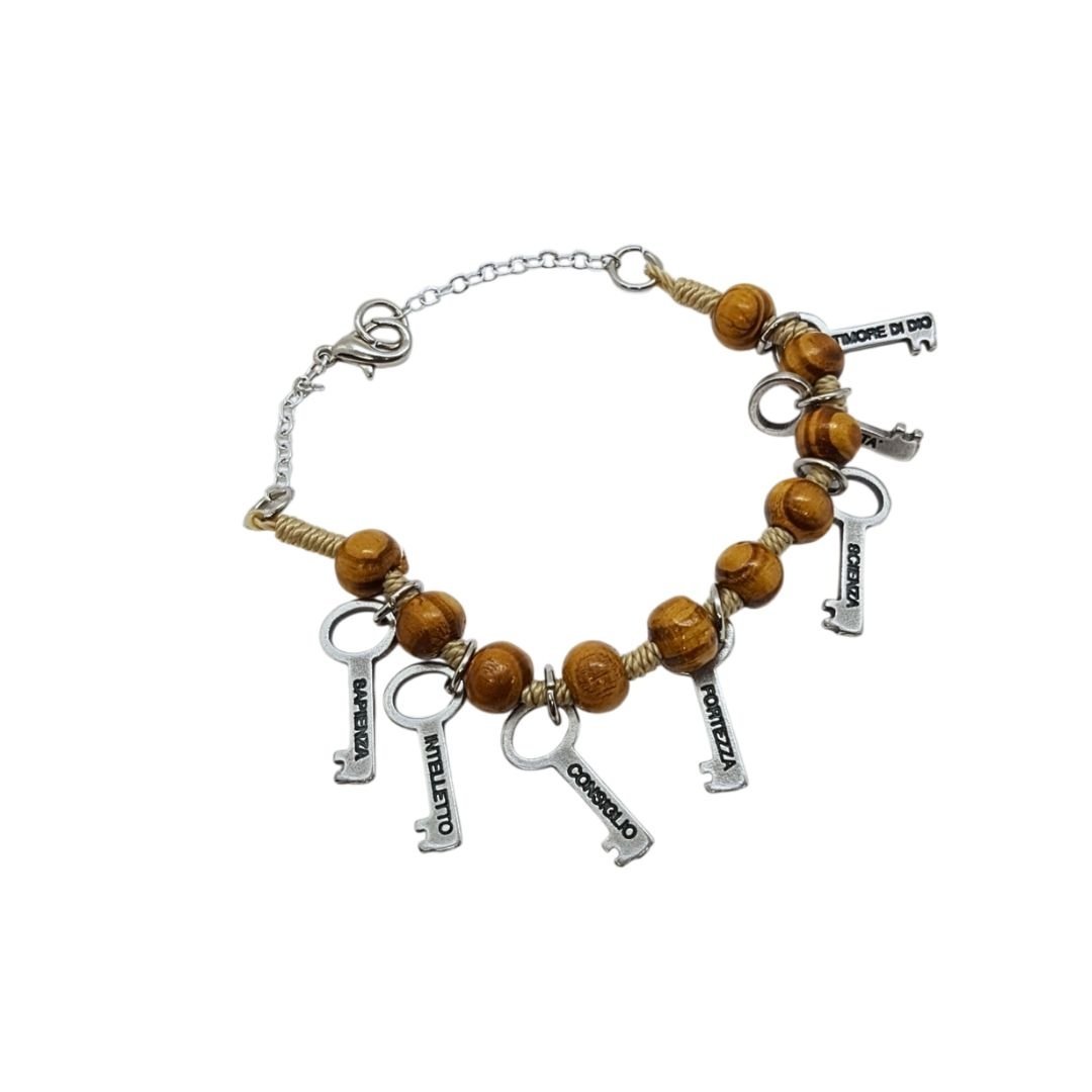 Pulseira Dezena em Madeira- 7 Dons Espírito Santo