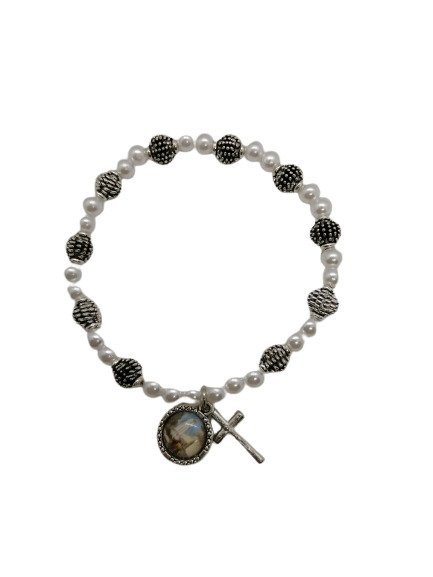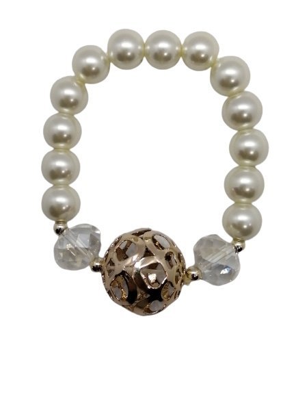 Pulseira Pérola – 10mm c/Anéis Swarovski e Pendete Rosa