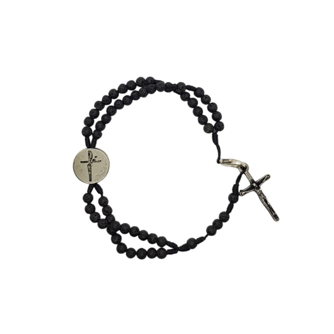 Pulseira/Terço de Pedra Natural Vulcânica de Lava 3MM, c/fecho