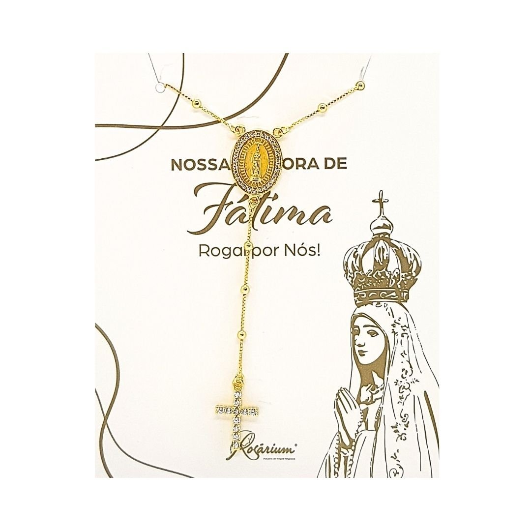 Terço Banhado a Ouro 18K c/contas 2MM, Passador e Cruz c/Brilhantes – Fátima