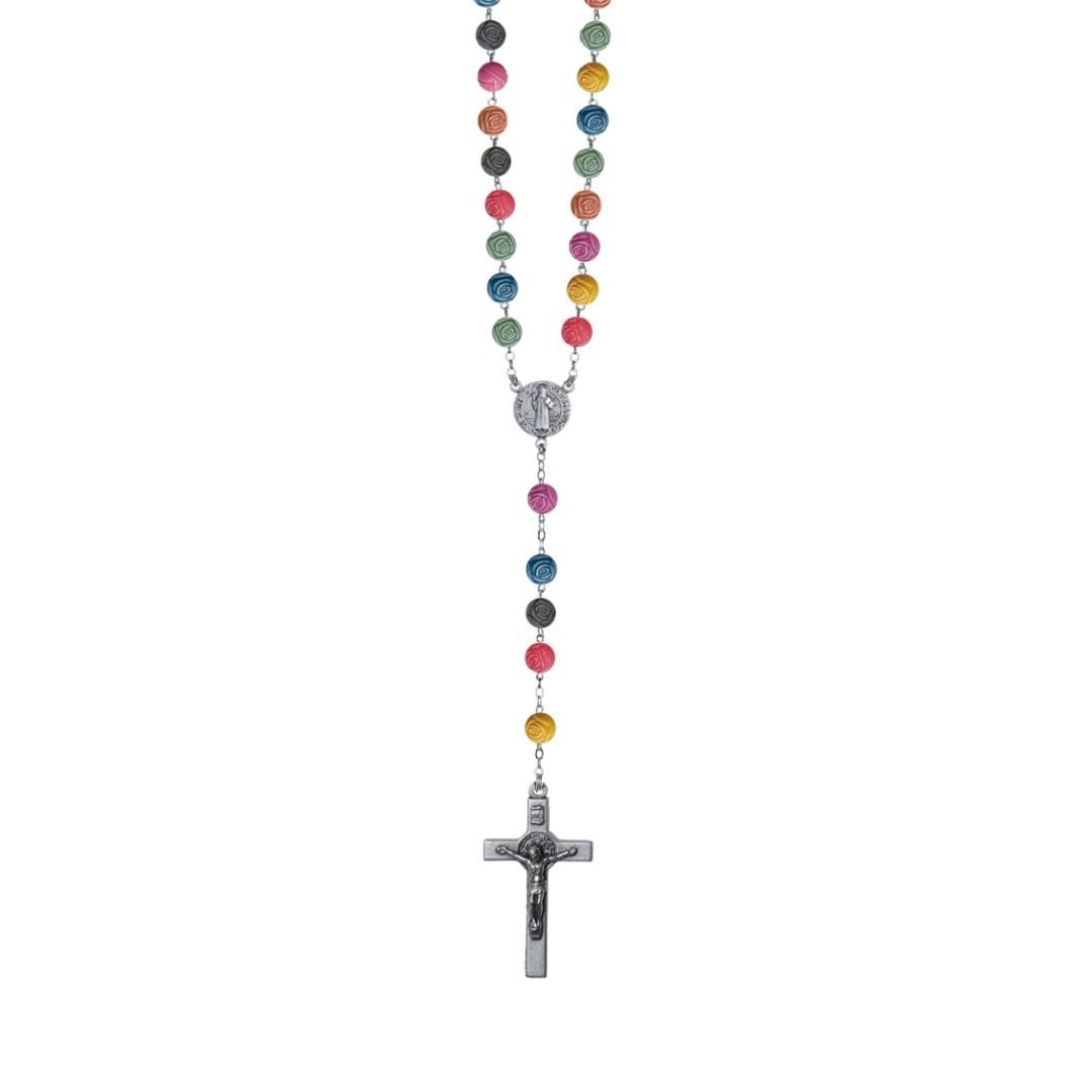 Terço de Acrílico c/Rosas Alpaque Multicolor 8MM