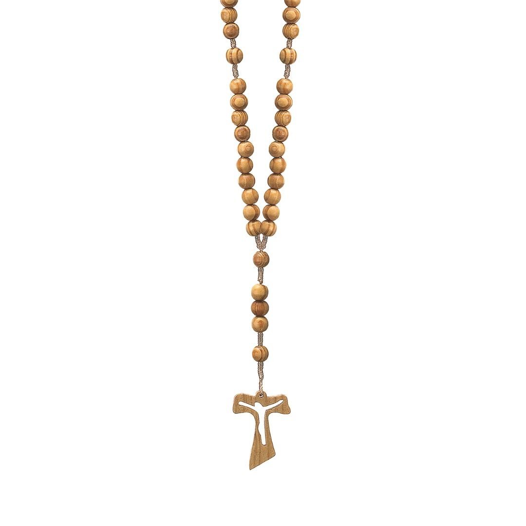 Terço de Corda/Madeira Oliveira, 10mm, c/Cruz Tau