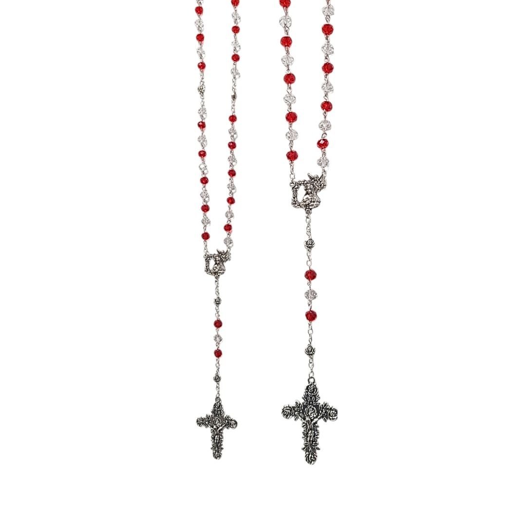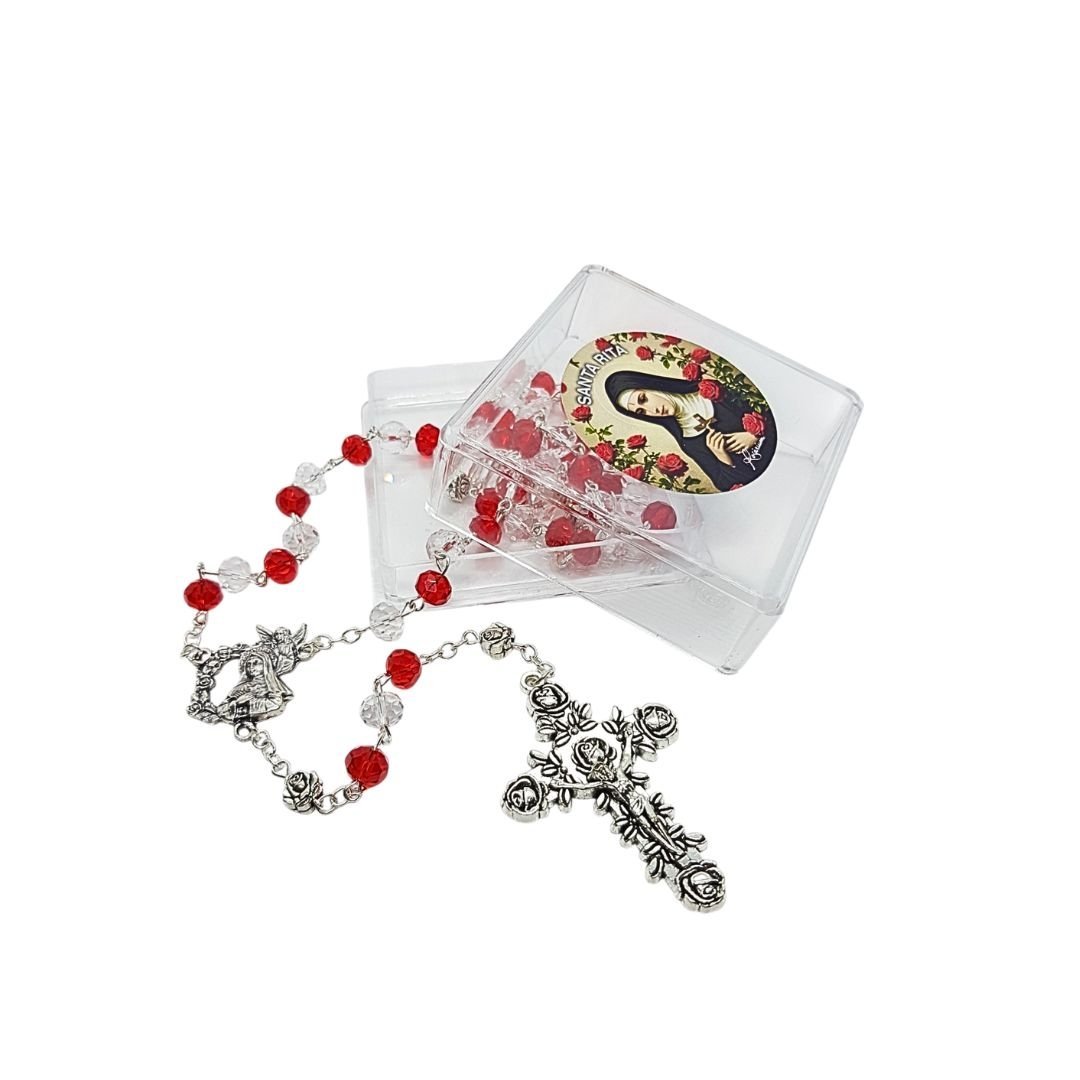 Terço de Cristal 8mm, Santa Rita c/caixa