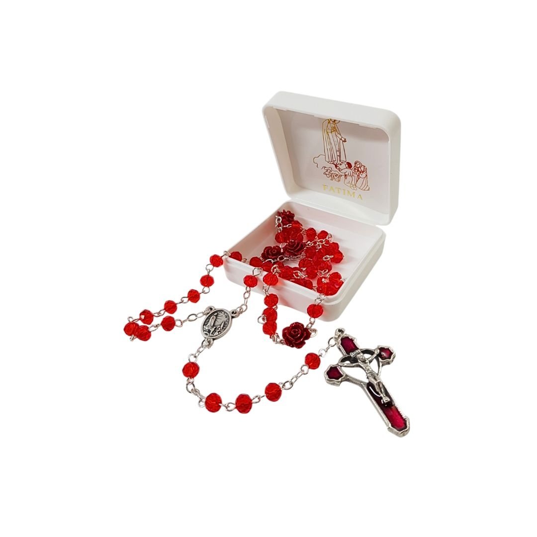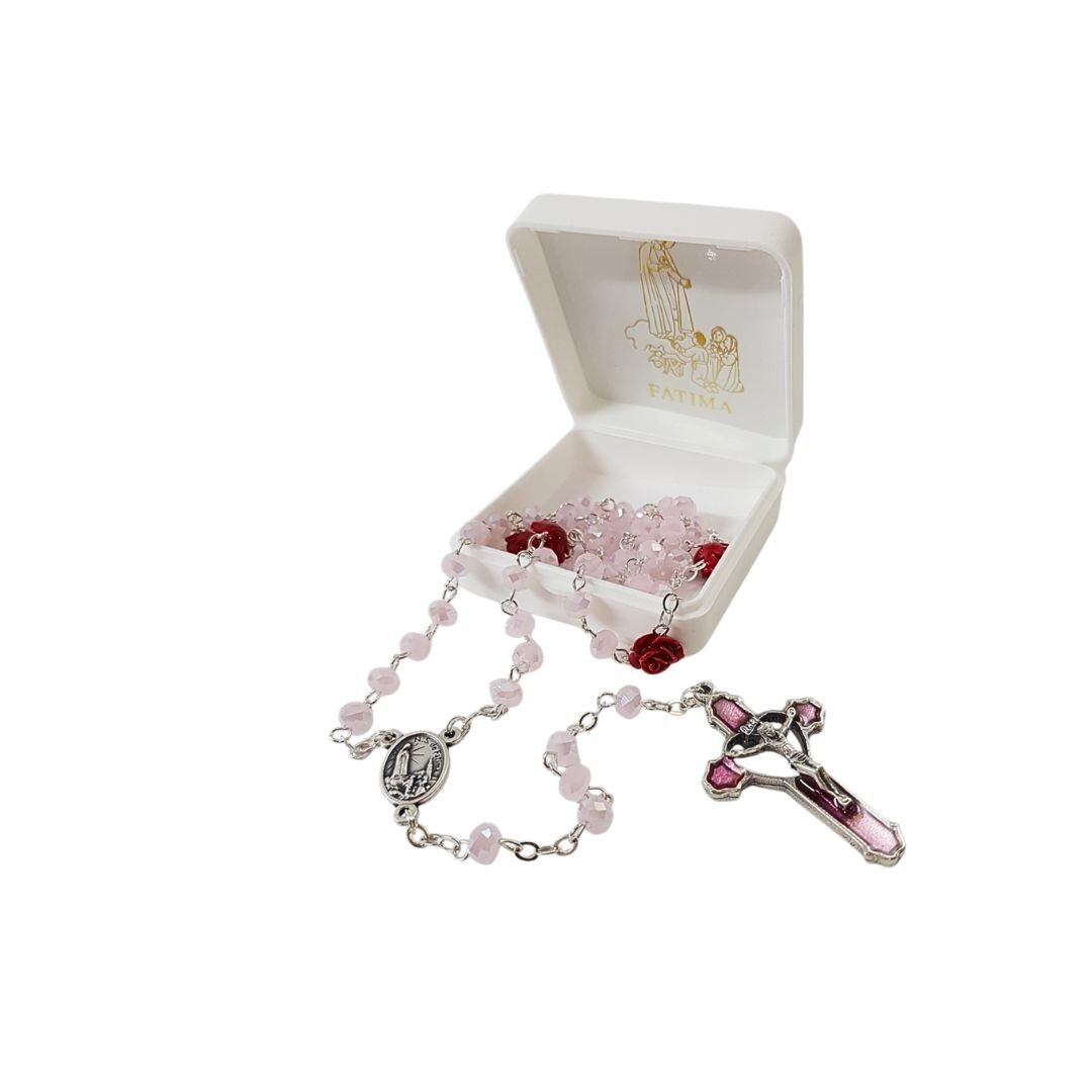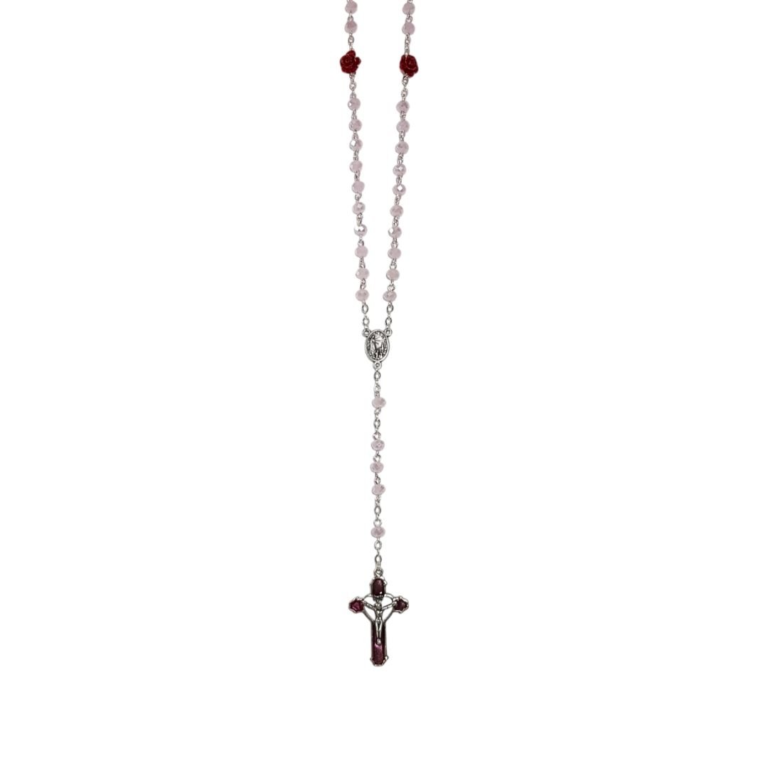 Terço de Cristal c/Rosa em Fimo, 6MM