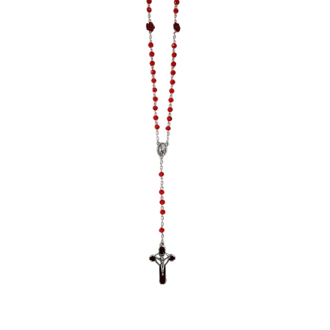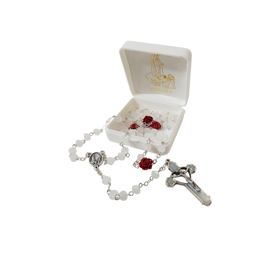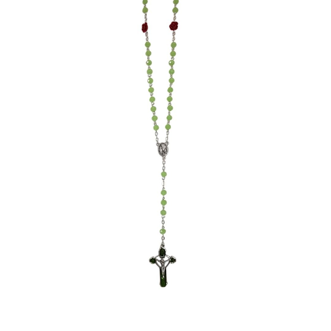 Terço de Cristal c/Rosa em Fimo, 6MM