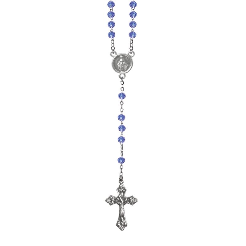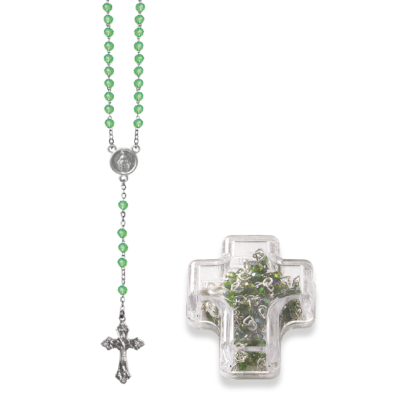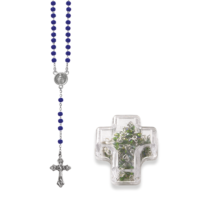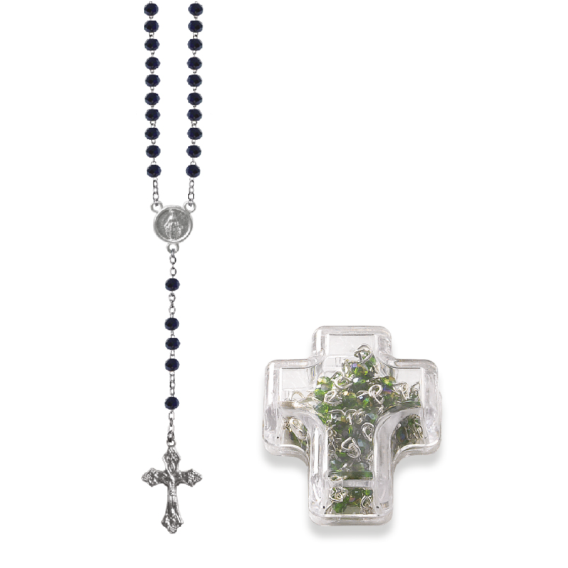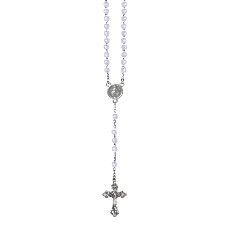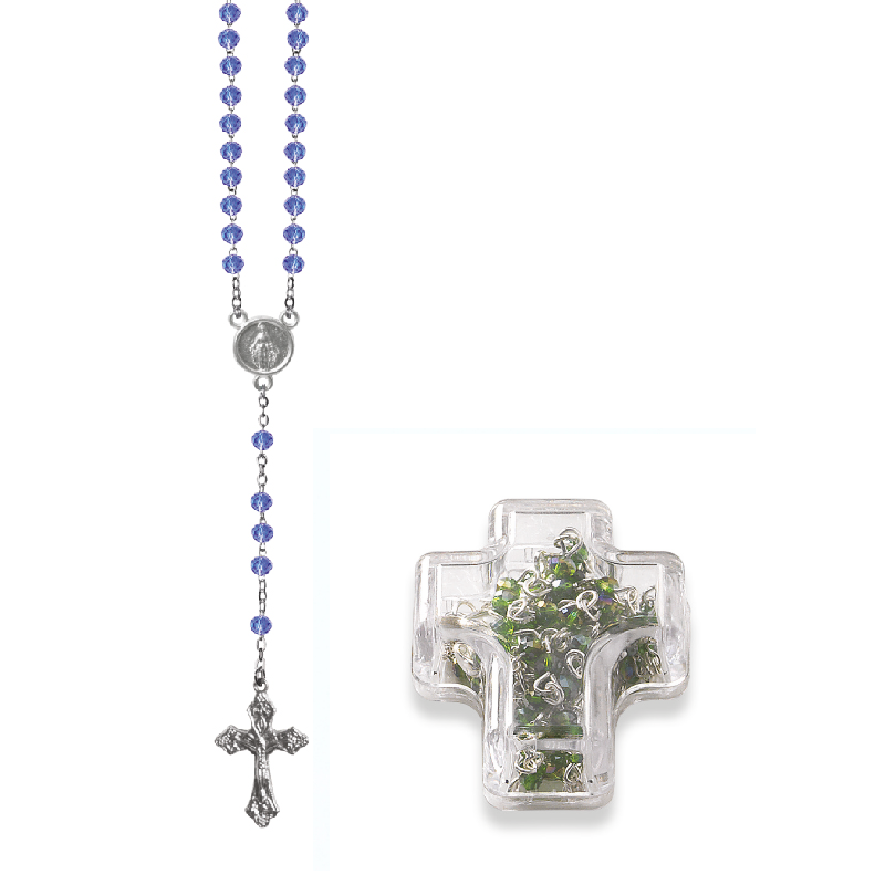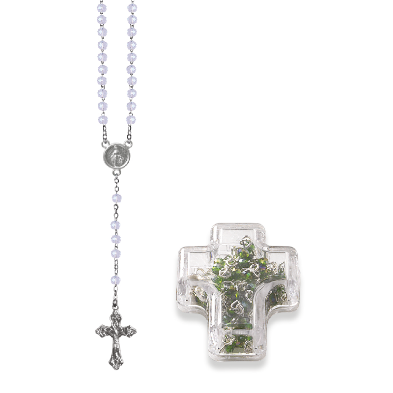 Terço de Cristal Disco 4MM Prateado em Caixa Cruz