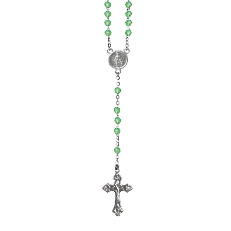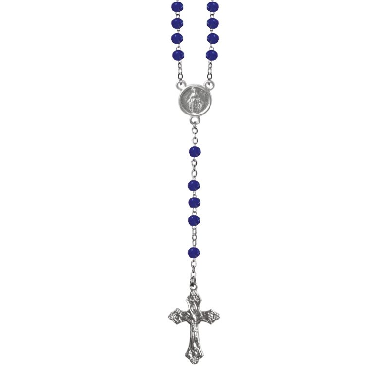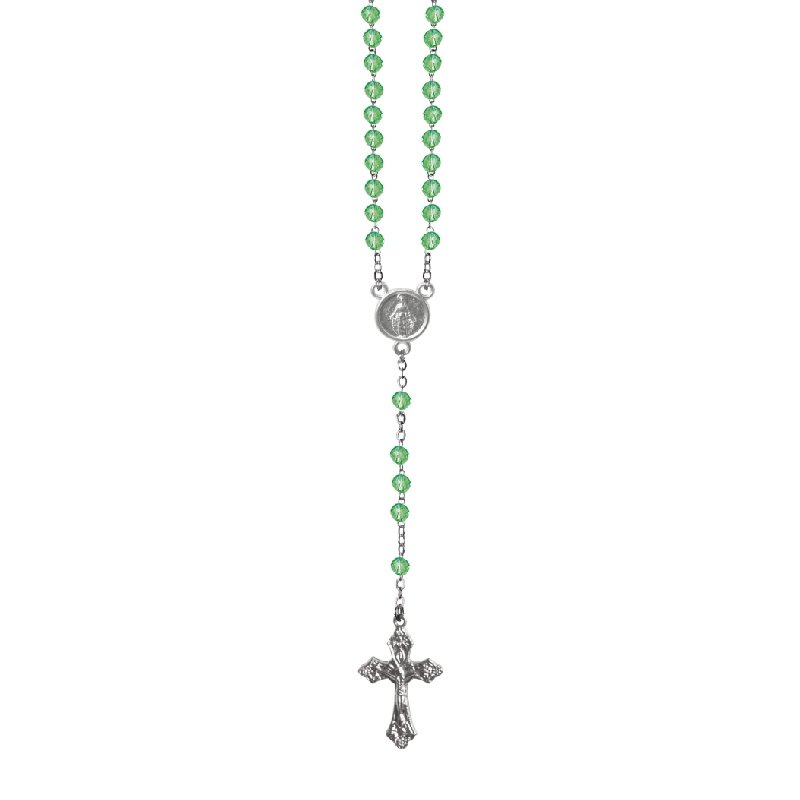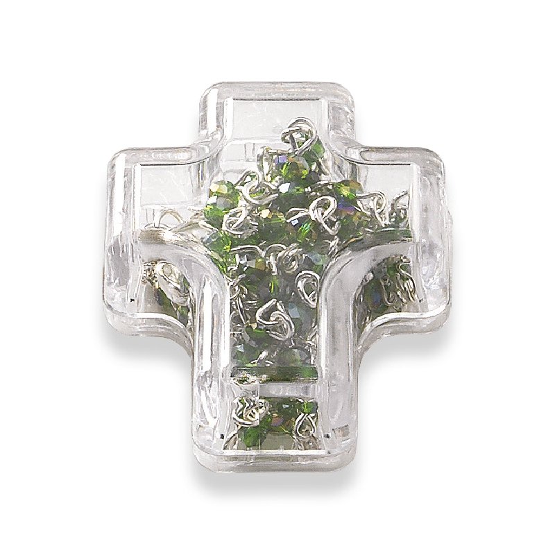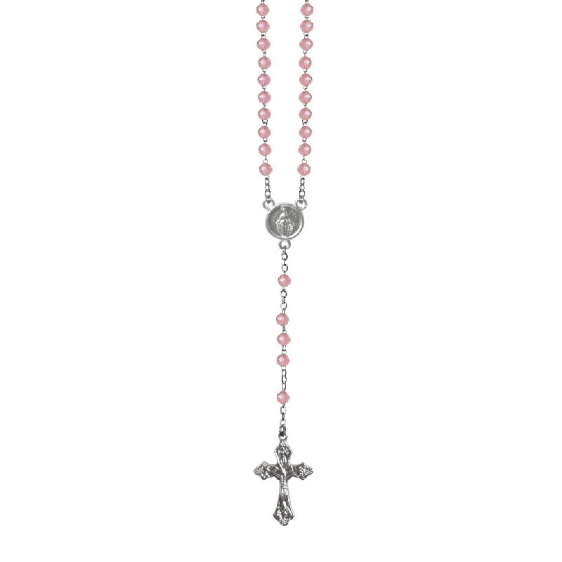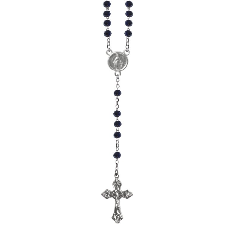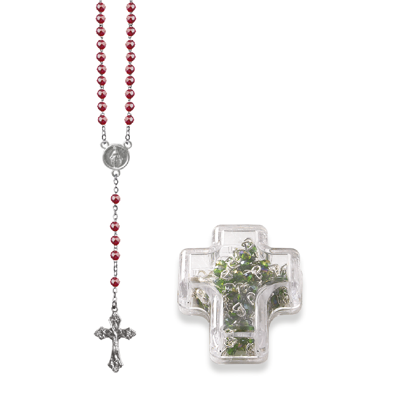 Terço de Cristal Disco 4MM Prateado em Caixa Cruz