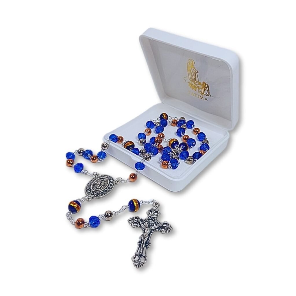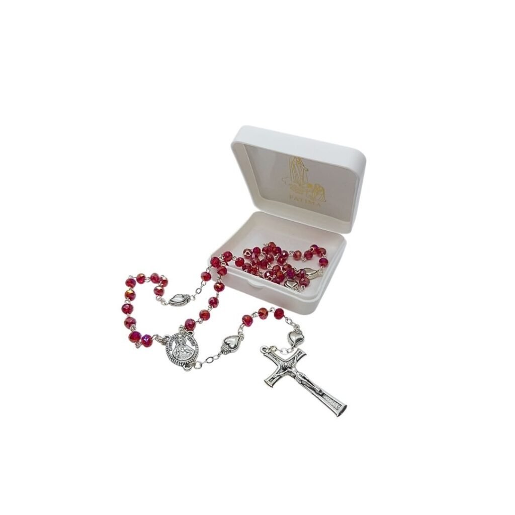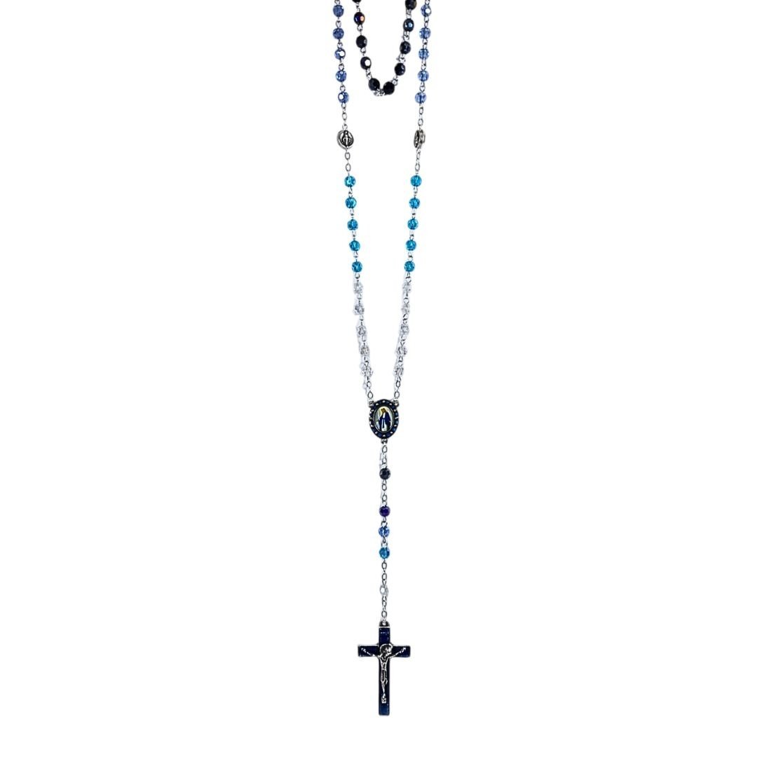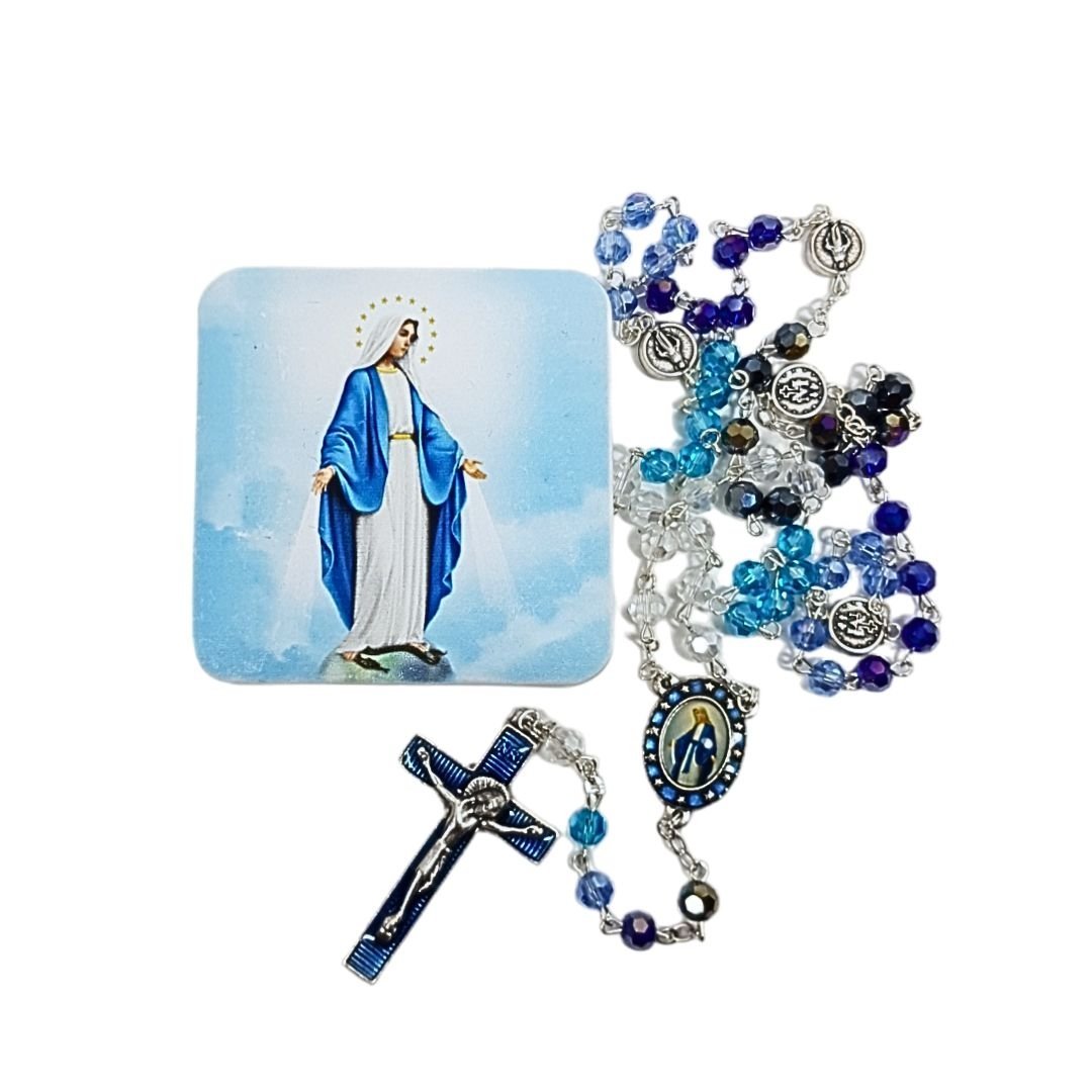 Terço de Cristal Disco Esfumado 8mm, Nossa Senhora das Graças