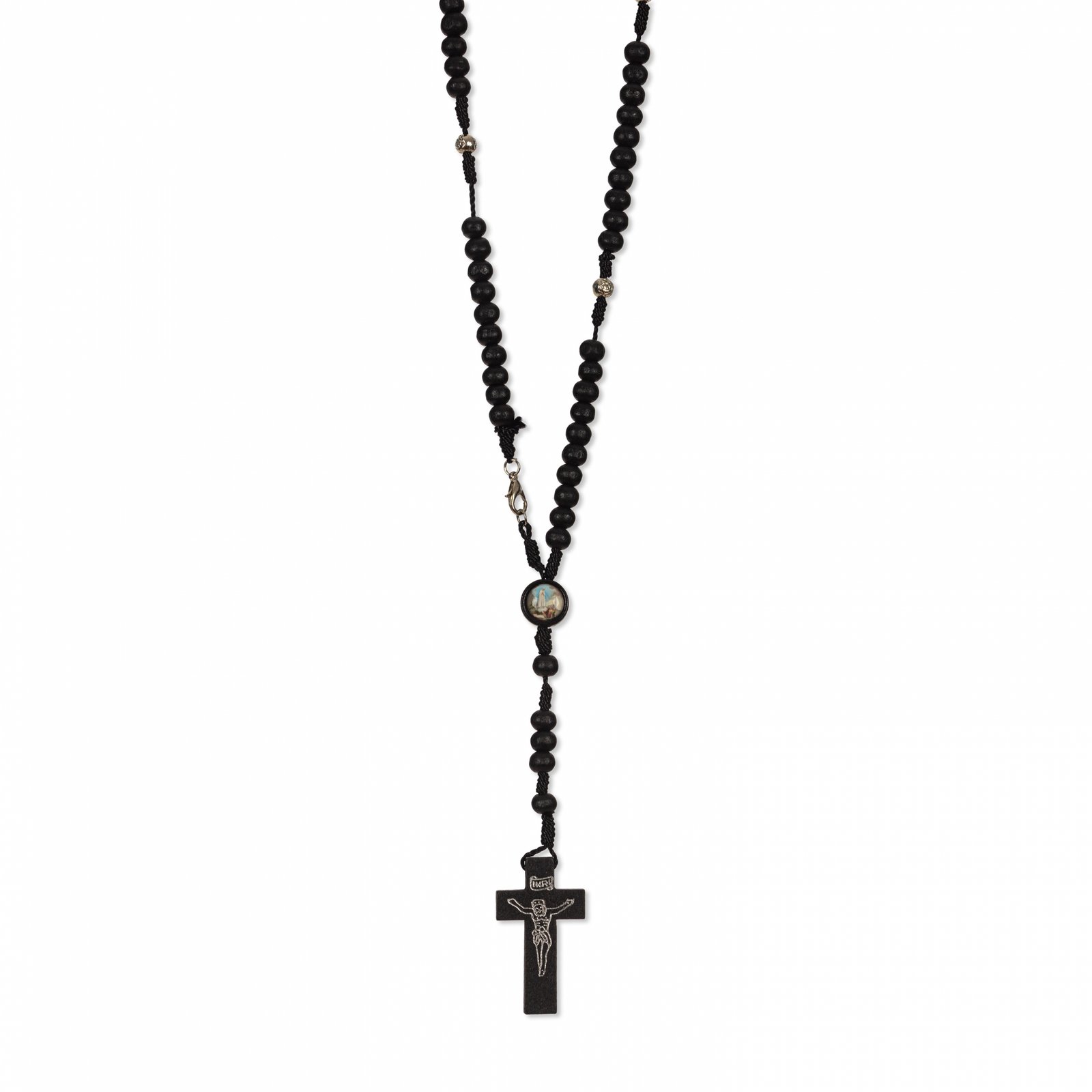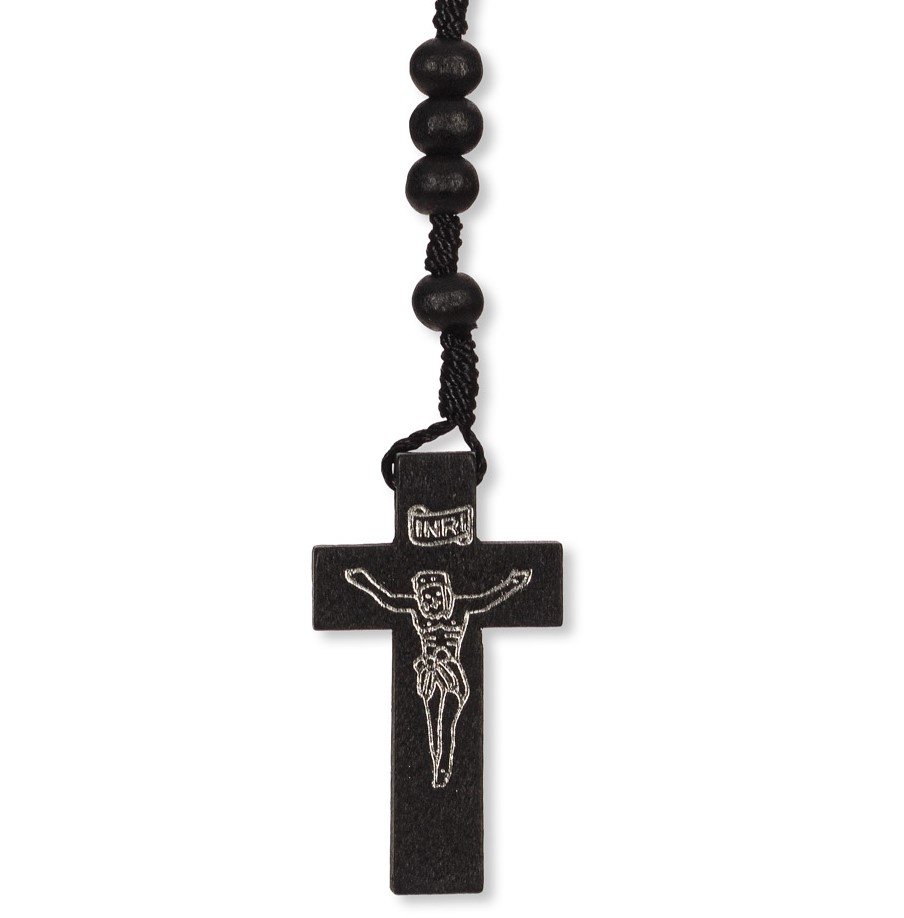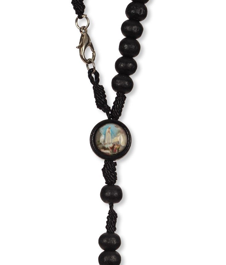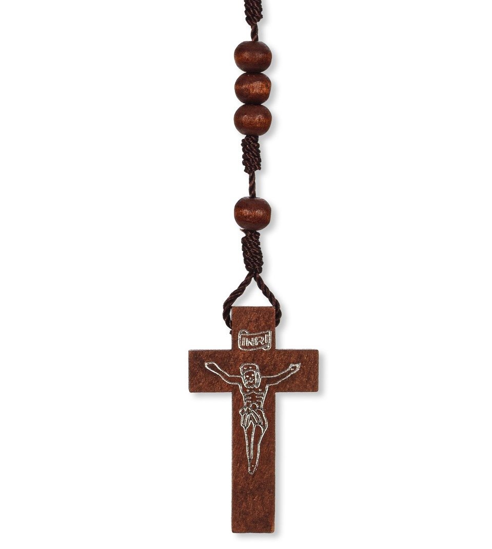 Terço de Madeira Corda c/ Pai Nosso Metal Rosas Alpaque