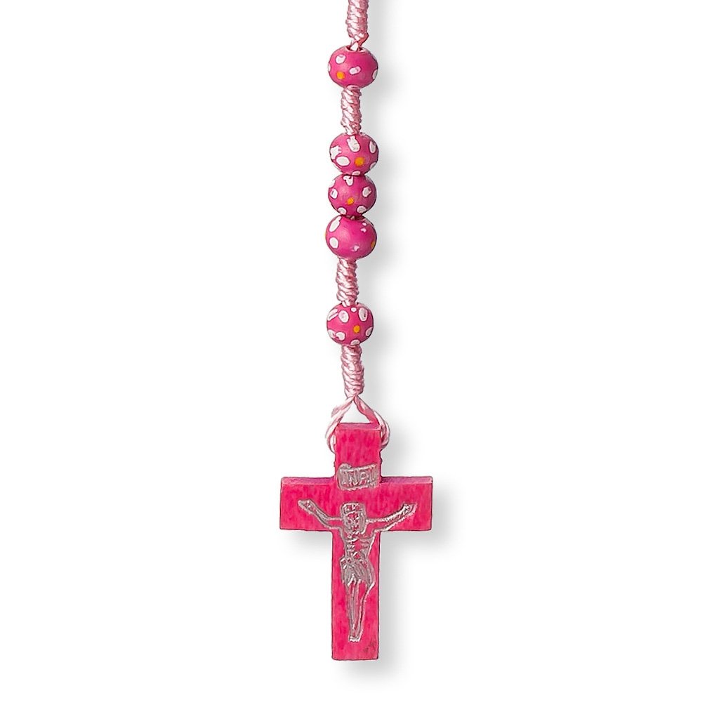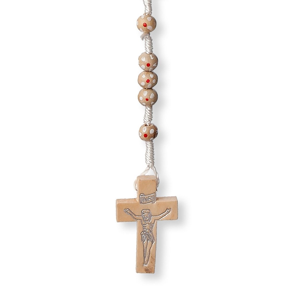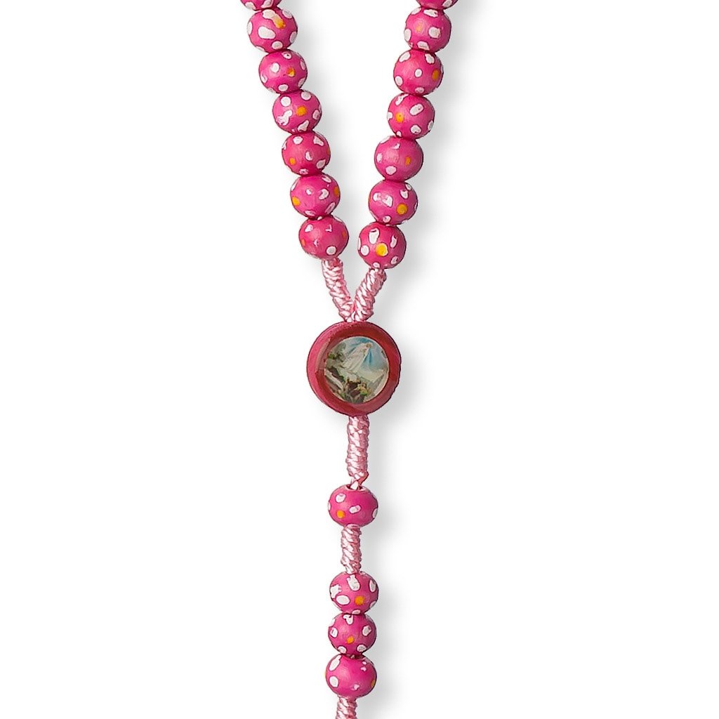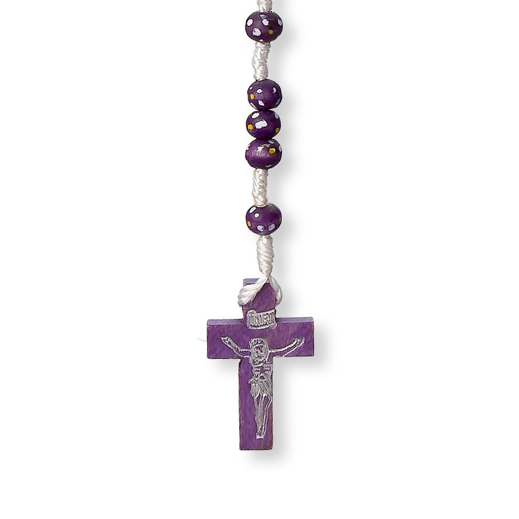 Terço de Madeira – em corda – Florido C/ fecho metálico