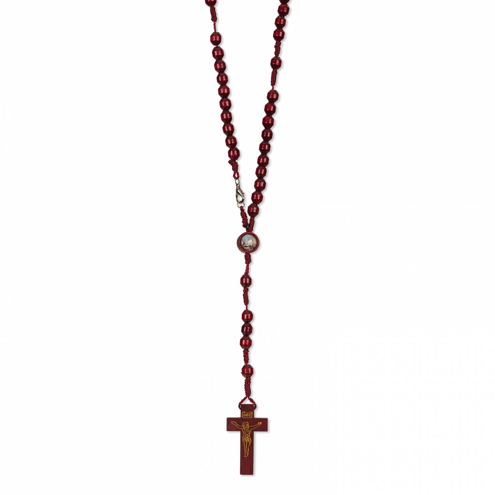 Terço de Madeira Vermelha Corda Cilíndrica Octagonal